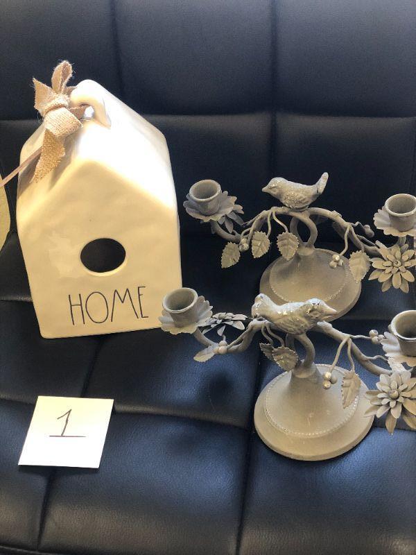 Lot 1 Rae Dunn Bird House & Set of Song Bird Candle Sticks