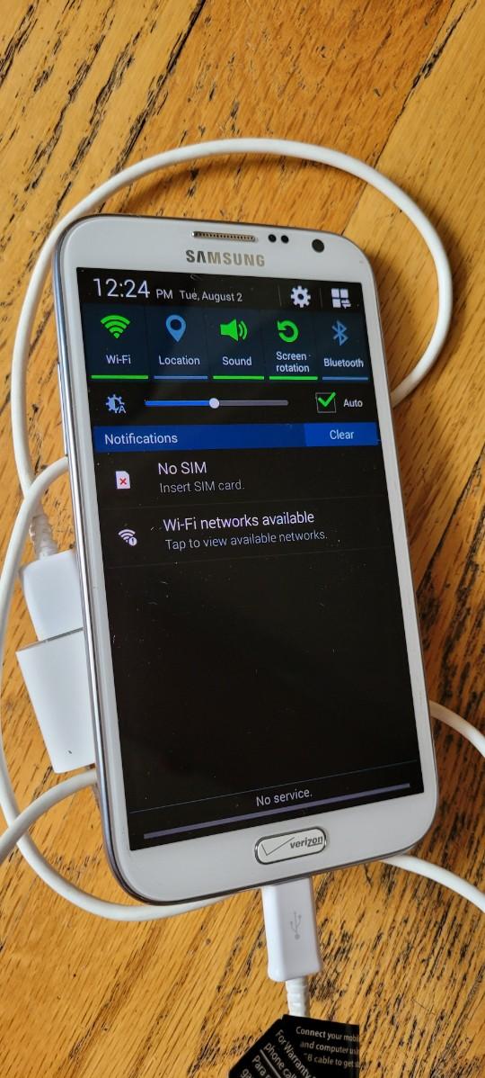 This phone has no issues on inspection, charges nicely and does not have a Sim card so it is ready for a new owner. This phone can be used with carriers like Boost and other Non-Major PrePaid carriers who offer their own Sim card.
