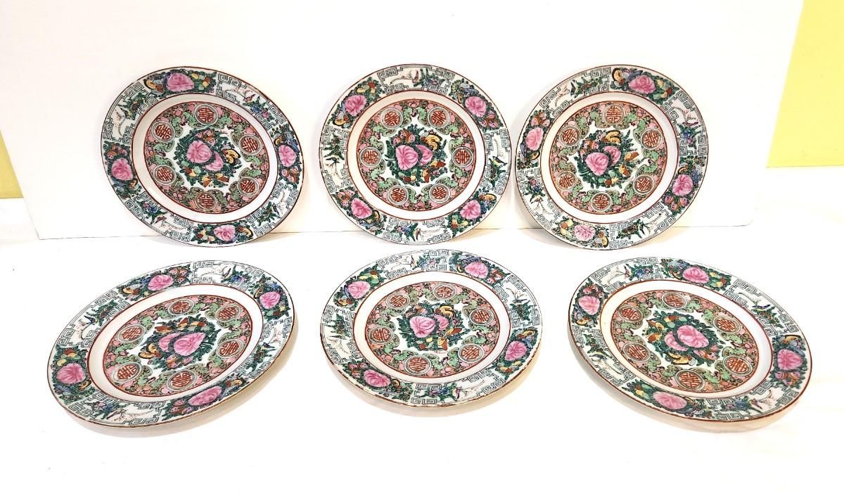 Lot #1  Set of 6 Vintage Dessert Plates - Rose Medallion - Hong Kong