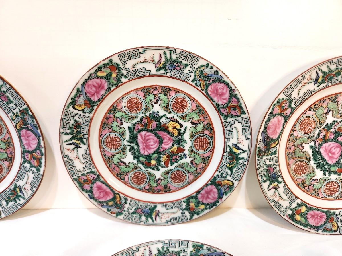 Lot #1 Set of 6 Vintage Dessert Plates - Rose Medallion - Hong Kong