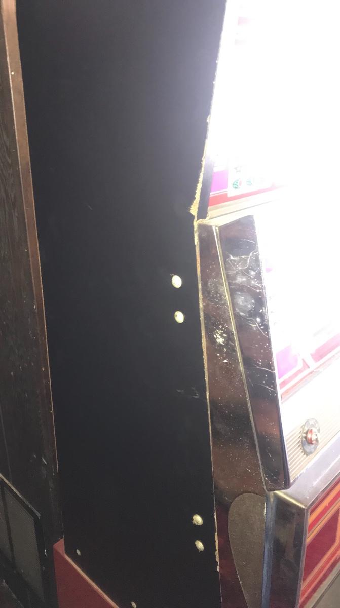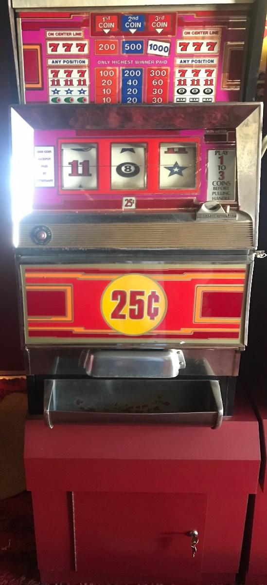 Vintage slot machine by Bally Manufacturing Corporation. Machine powers on and appears to be operational, but overall working condition is not known. Machine is attached to a wooden cabinet and comes with keys for operation. Including cabinet the dimensions are 24 x 23 by 65 inches tall. The pictures show condition, measurements if taken, and what is included in the lot. Due to the large amount that we photograph and the time frame, we are not always able to take measurements. All items unless noted, are pre-owned and have been used. If you purchased furniture, you must bring help. We do not allow one person to carry large furniture out on their own. Bring help, tools and a truck for the safety of our client’s homes, and your personal safety. Company policy. Thank you.