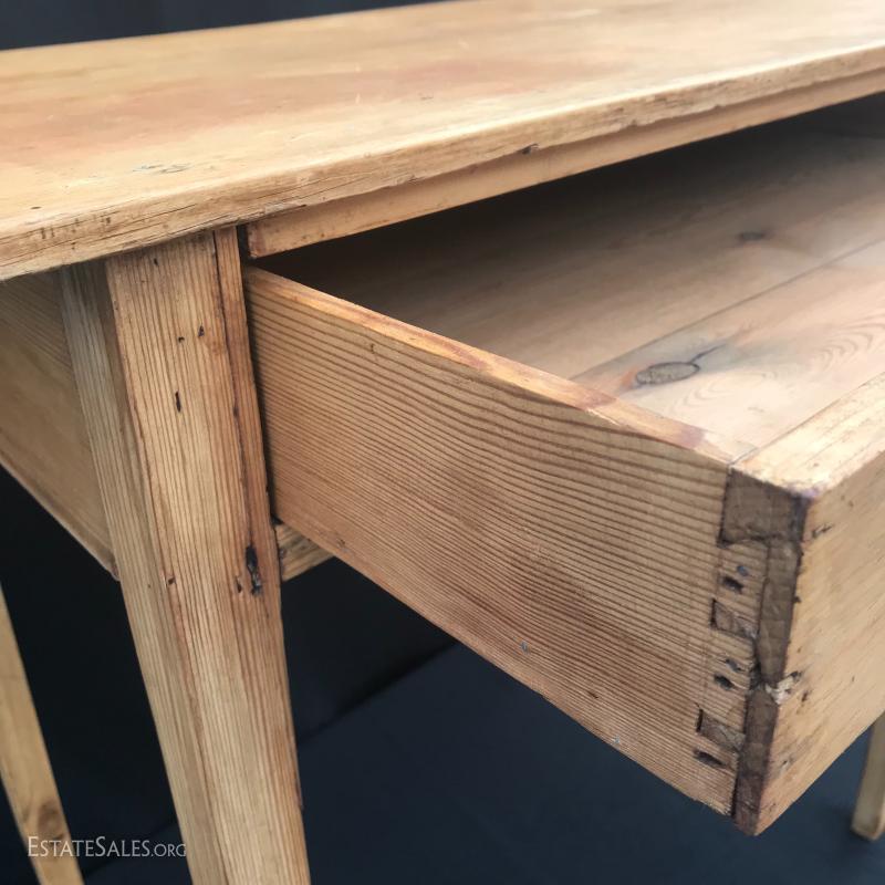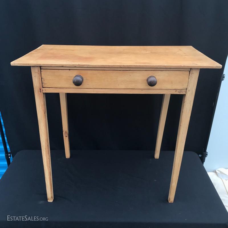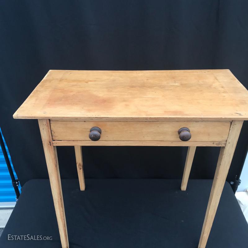 One-drawer small pine side table. Measures 32” x17” x28”. This item is available for local pick up in Asheville, NC only.
