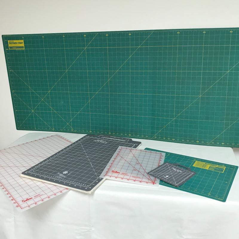 Lot includes six rotary mats for all your quilting and crafting needs. Smallest is 5” x 5”, largest is 70” x 23” and in two parts. One mat has a padded canvas backing. See pics for details. Local pickup only.
