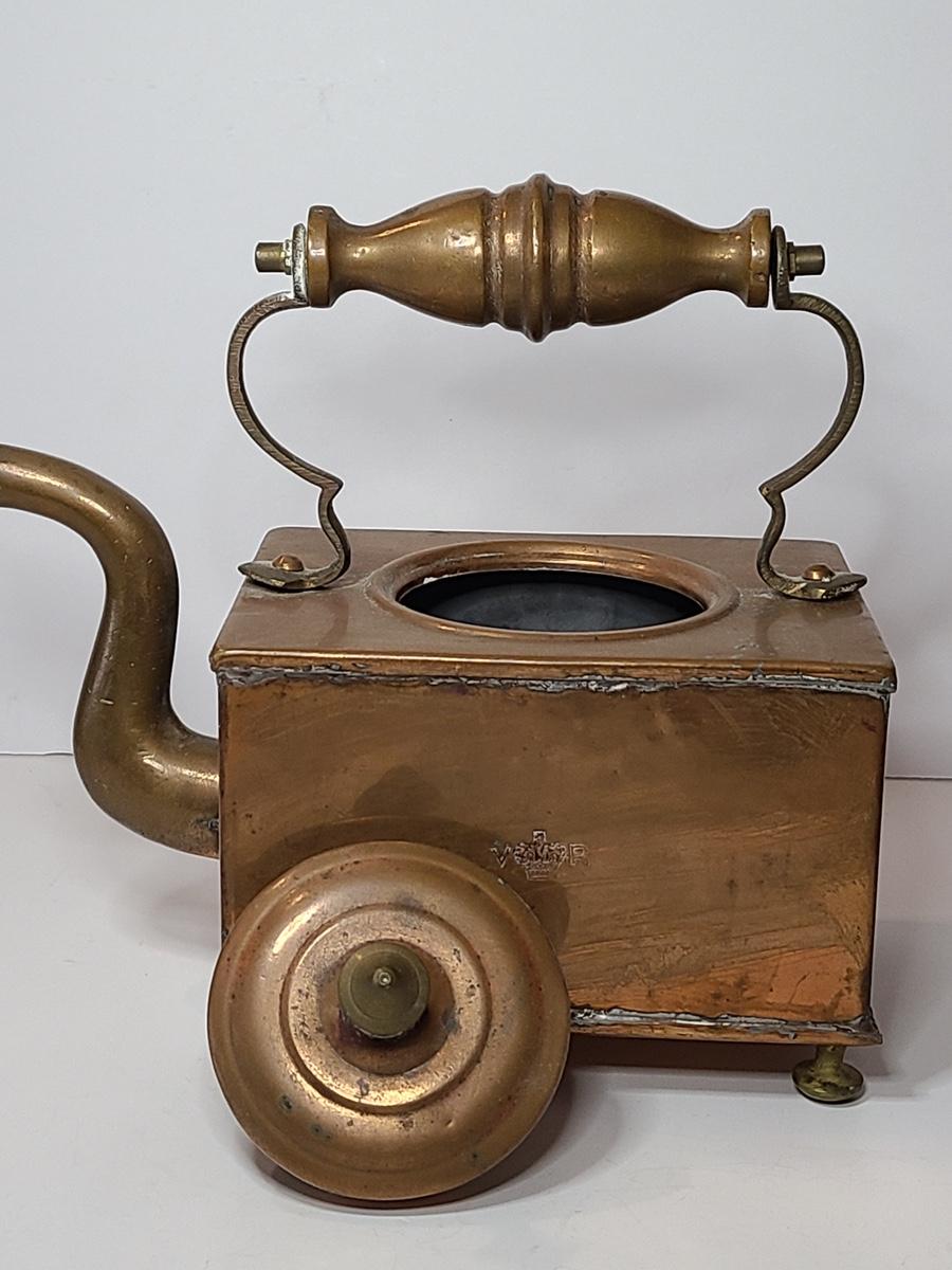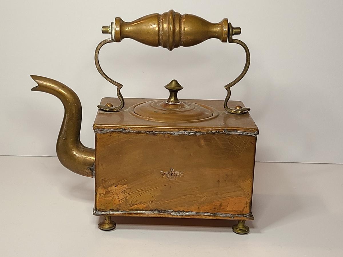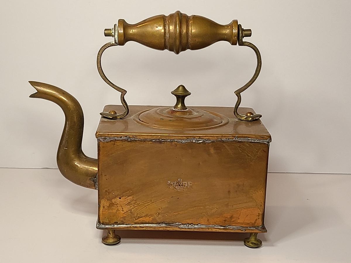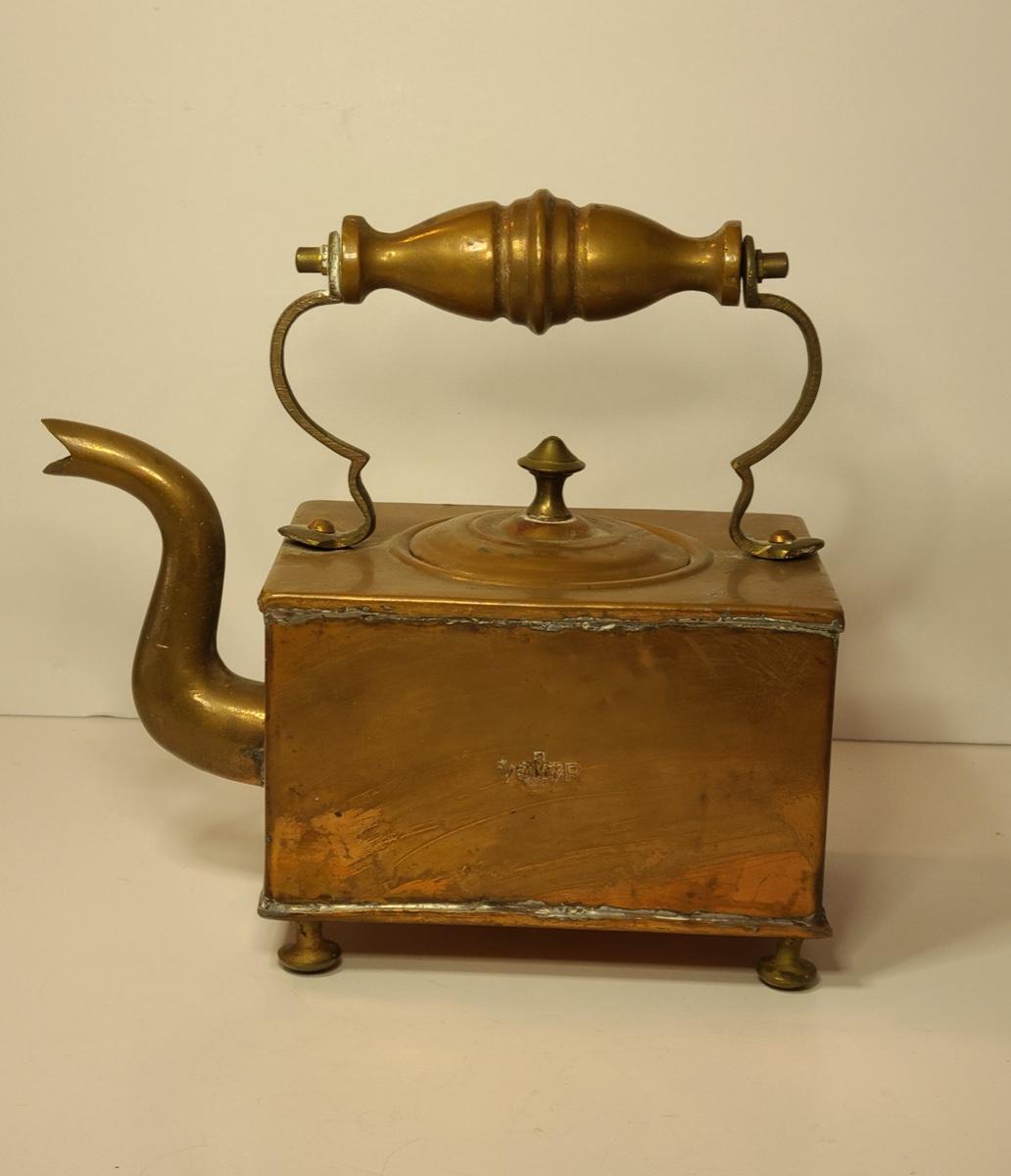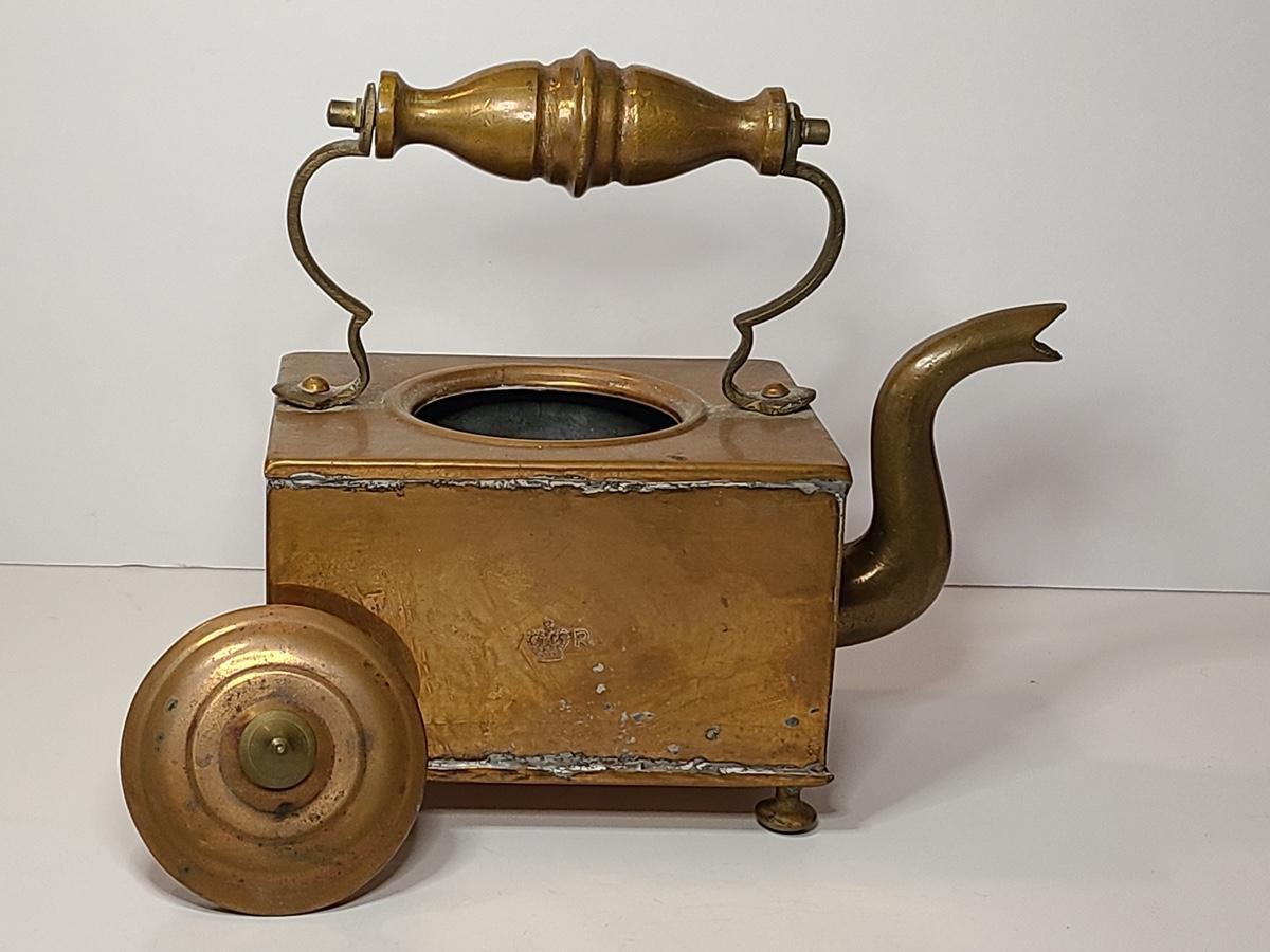 Antique English copper tea kettle with VR Crown mark on the side. Please see all pictures as they are the best representation of the items. The pictures show condition, measurements if taken, and what is included in the lot. Due to the large amount that we photograph and the time frame, we are not always able to take measurements. All items unless noted, are pre-owned and have been used. If you purchased furniture, you must bring help. We do not allow one person to carry large furniture out on their own. Bring help, tools and a truck for the safety of our client’s homes, and your personal safety. Company policy. Thank you.