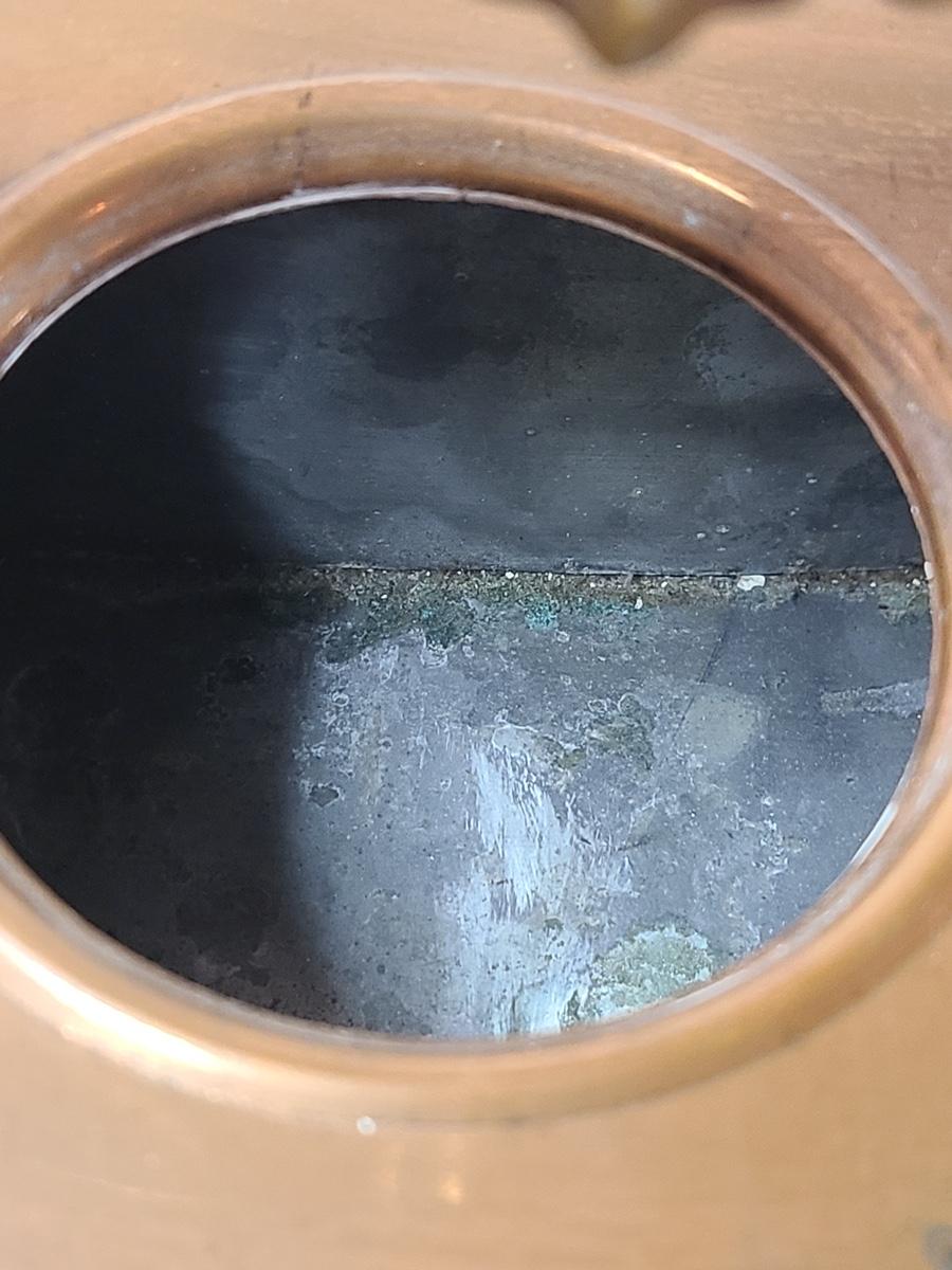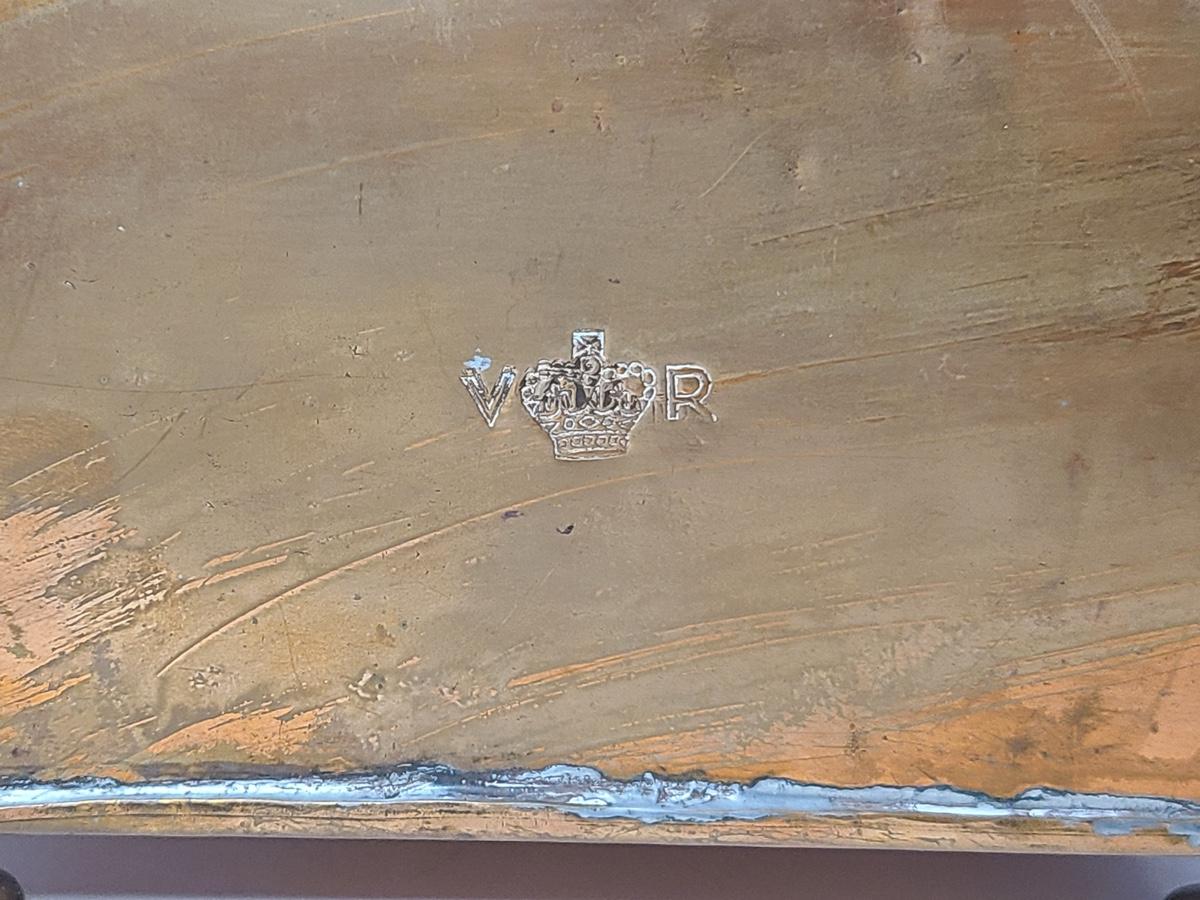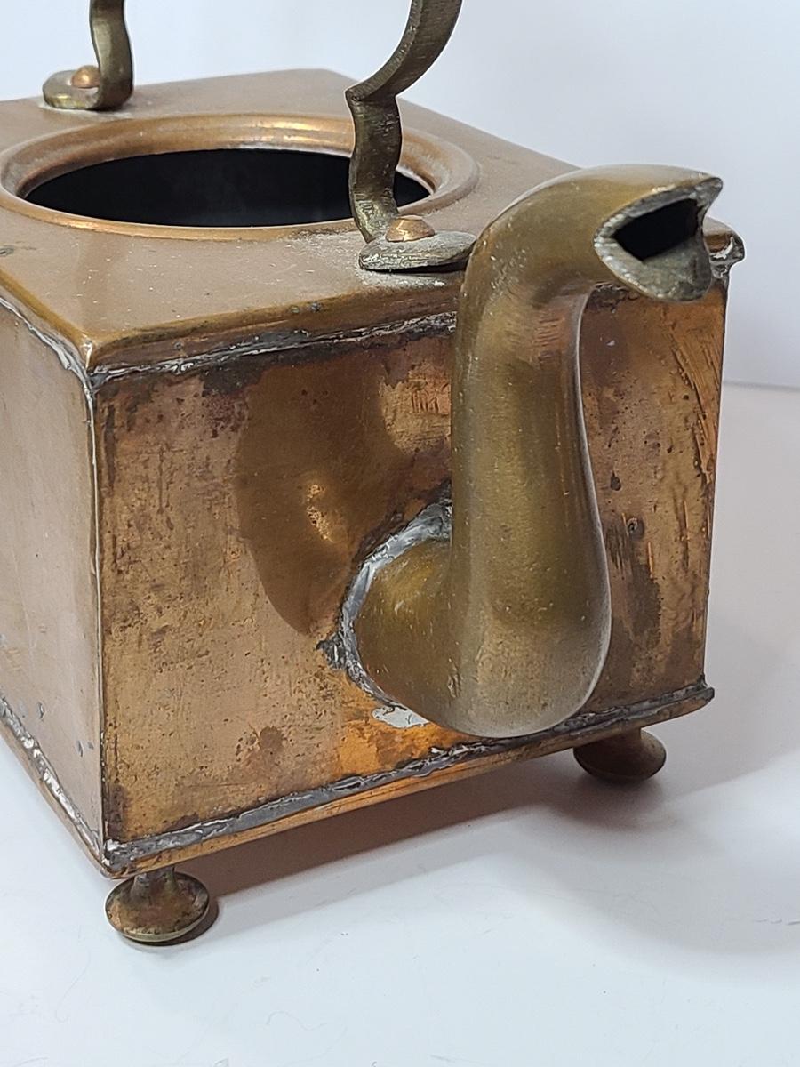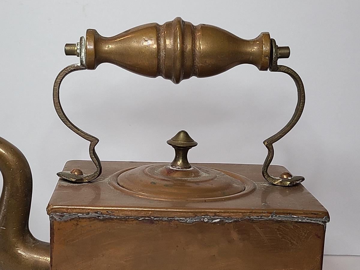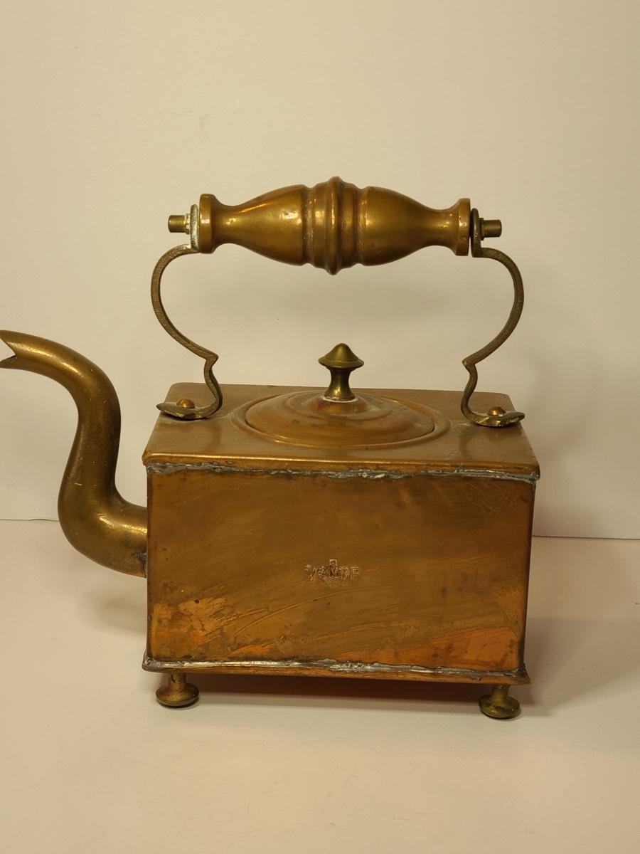 Antique English copper tea kettle with VR Crown mark on the side. Please see all pictures as they are the best representation of the items. The pictures show condition, measurements if taken, and what is included in the lot. Due to the large amount that we photograph and the time frame, we are not always able to take measurements. All items unless noted, are pre-owned and have been used. If you purchased furniture, you must bring help. We do not allow one person to carry large furniture out on their own. Bring help, tools and a truck for the safety of our client’s homes, and your personal safety. Company policy. Thank you.