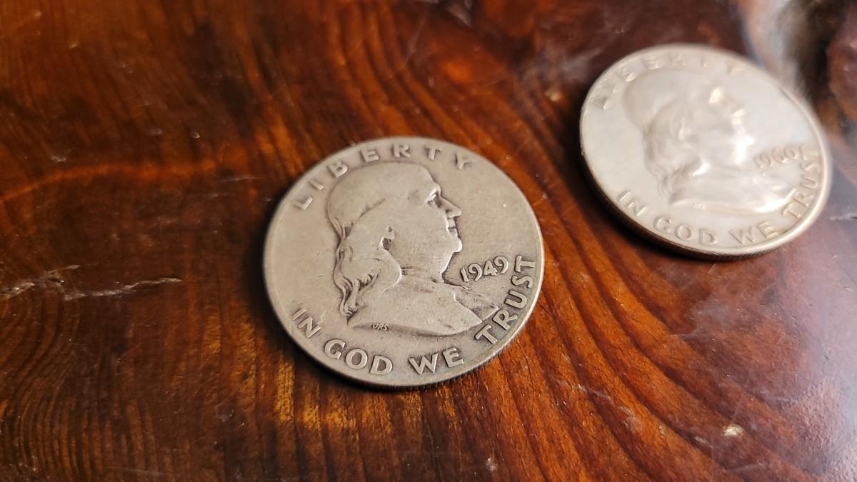 This lot features (2) Vintage 90% Silver content Half Dollars. Years are 1949 and 1960.