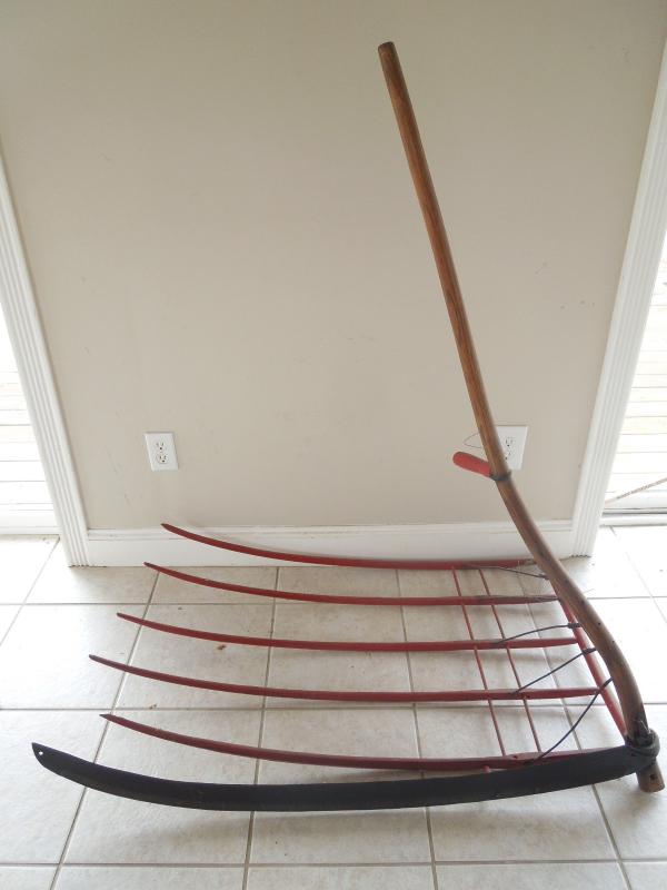 Lot 1  Vintage Primitive Large Scythe Hay Rake
