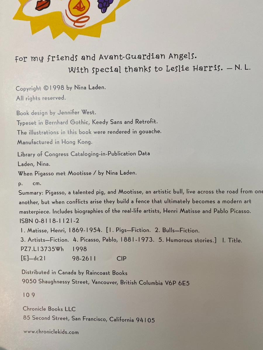 LOT 1: WHEN PIGASSO MET MOOTISSE BY NINA LADEN HARDCOVER 1998