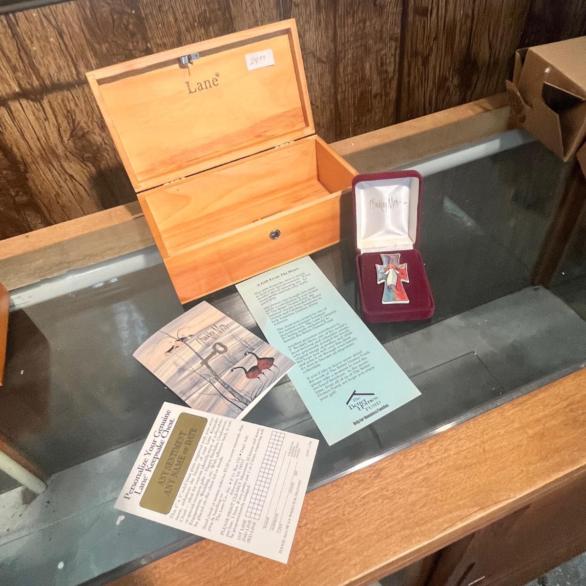 Lot 10 Lane Cedar Chest jewelry box w/ pin