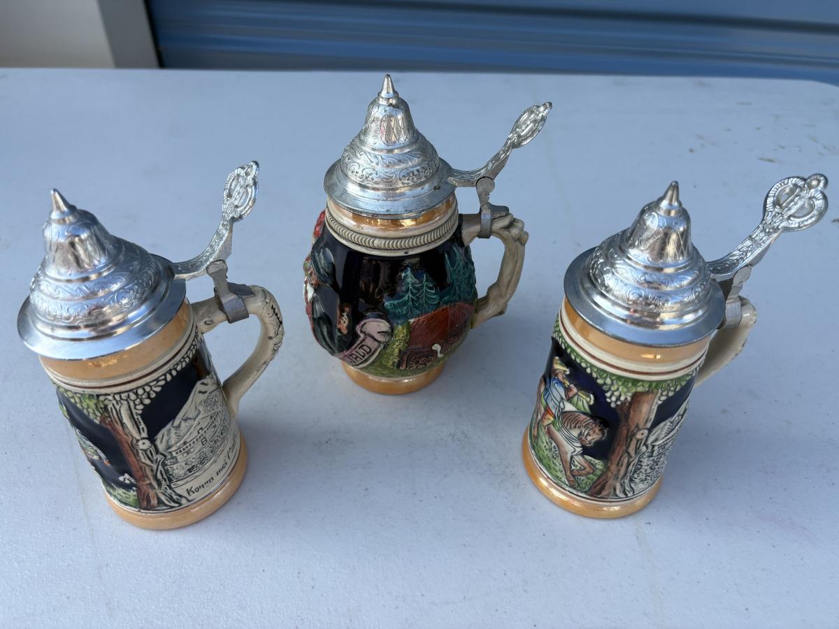 LOT 10 Three mini steins with lids