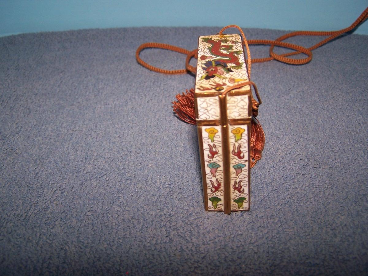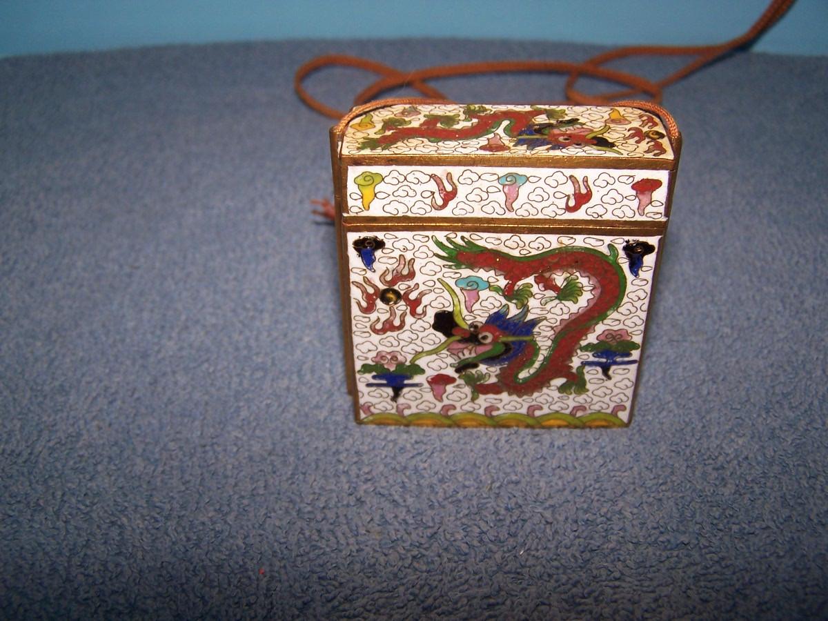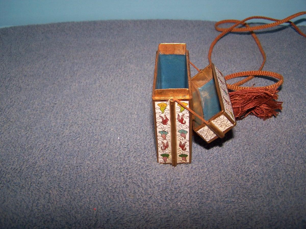 WONDERFUL ASIAN BRASS CLOISONNE BOX NECKLACE/HANGING UNMARKED BOX IS 2 3/4 INCHES TALL SLIGHT WEAR
