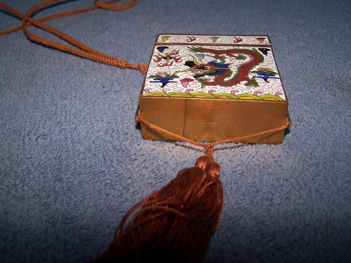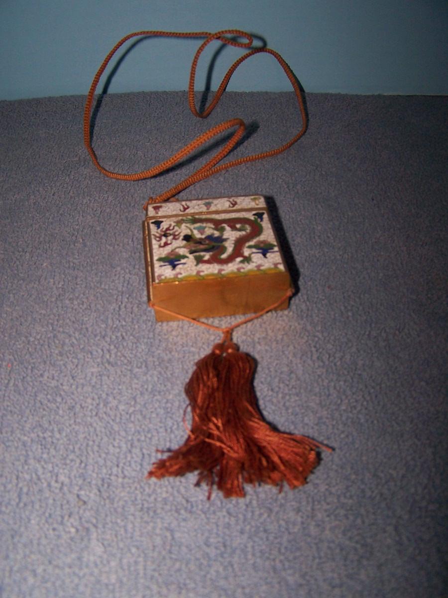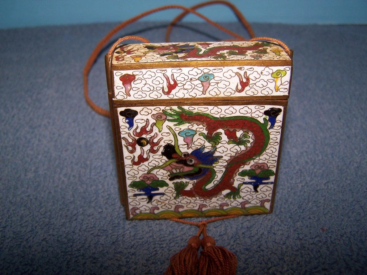 WONDERFUL ASIAN BRASS CLOISONNE BOX NECKLACE/HANGING UNMARKED BOX IS 2 3/4 INCHES TALL SLIGHT WEAR