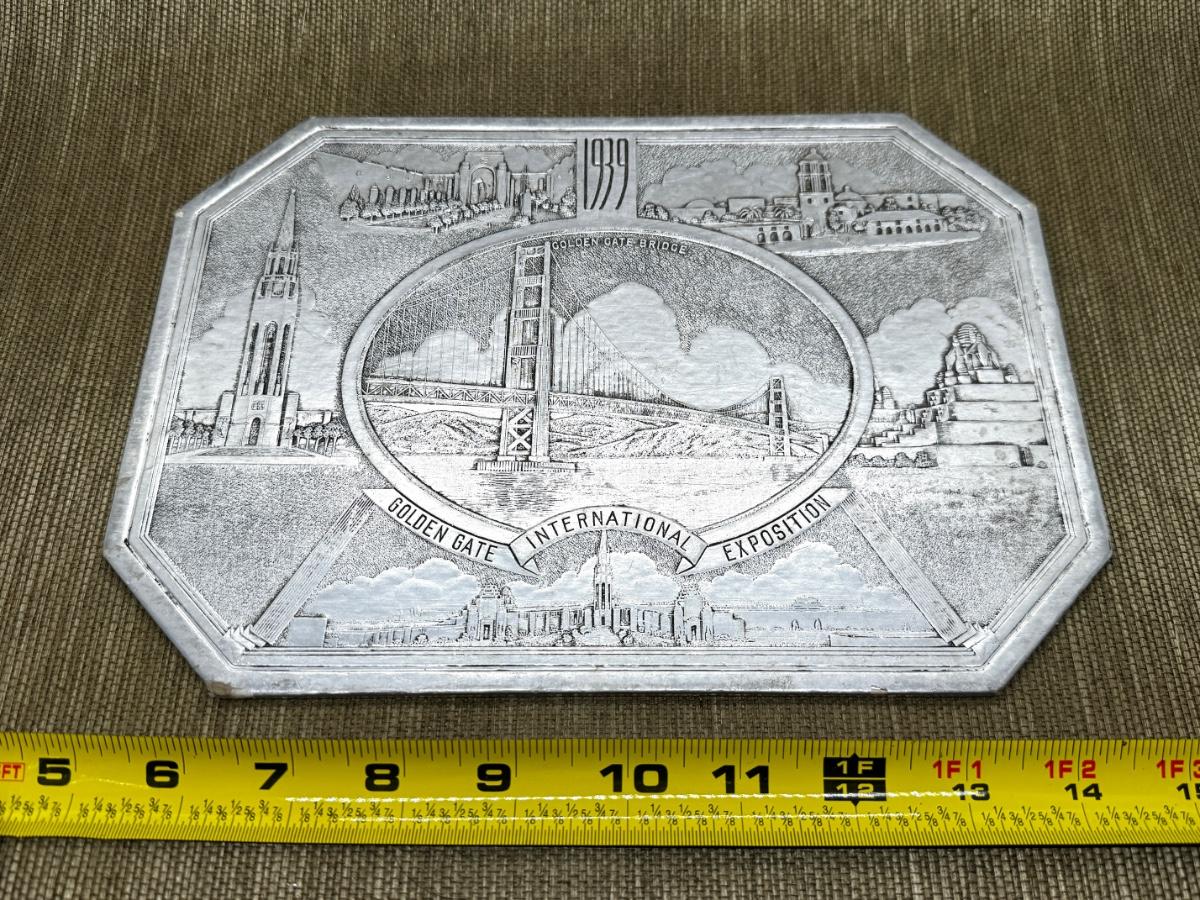 LOT 10 - 1939 Golden Gate International Exhibition - Standard Oil Trivet - San Francisco. Measurements are in the photo.