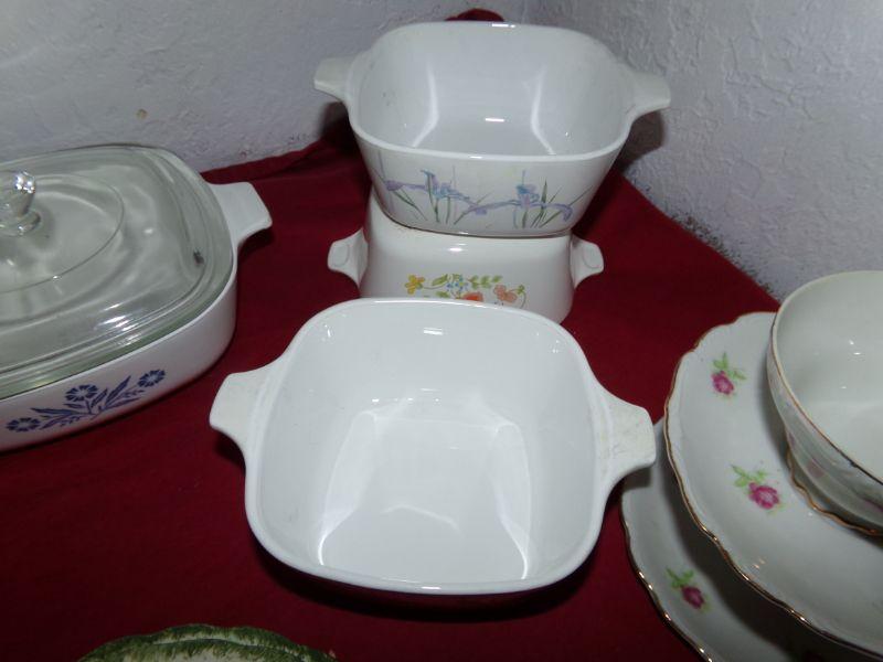 4 CORNINGWARE CASSEROLE DISHES (LID FOR 1)