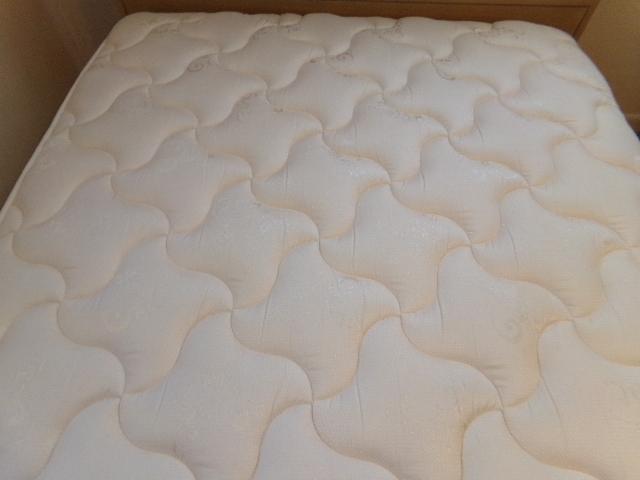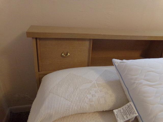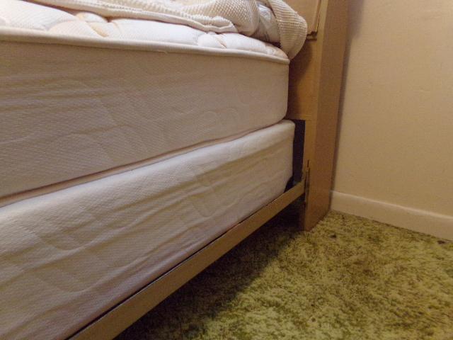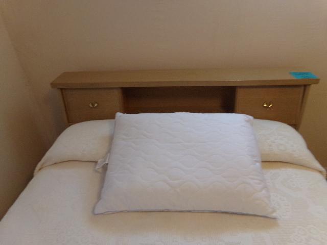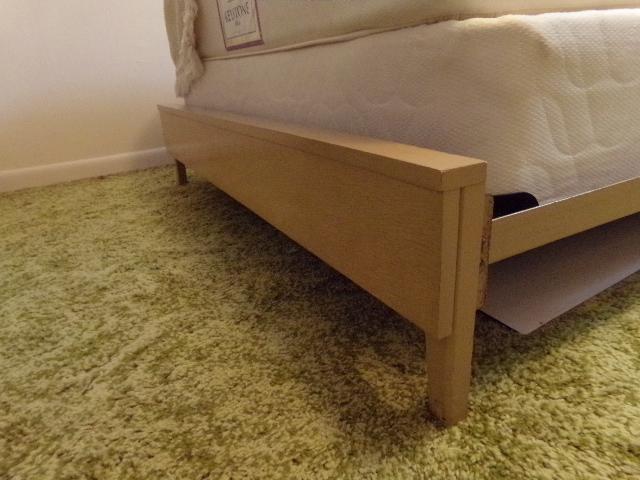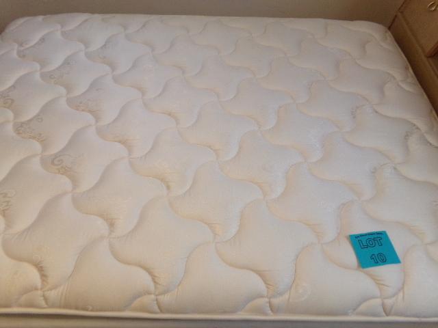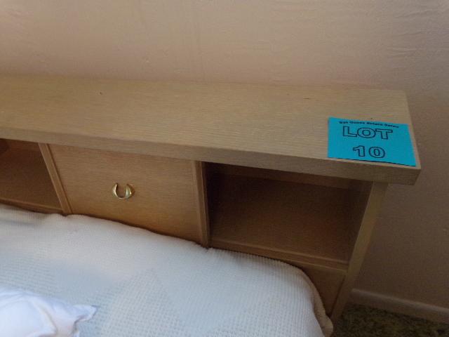 BED HAS A HEADBOARD (WITH STORAGE) & FOOTBOARD WITH A FULL SZ MATTRESS SET FROM DENVER MATTRESS (CLEAN AND FAIRLY NEW)