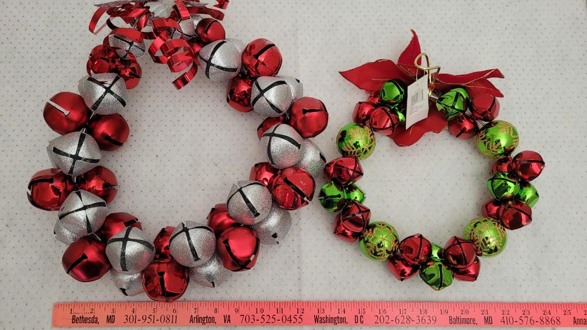Lot 10: (2) New Metal Bell Christmas Wreaths