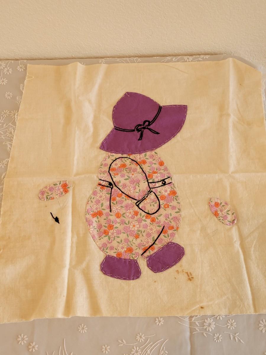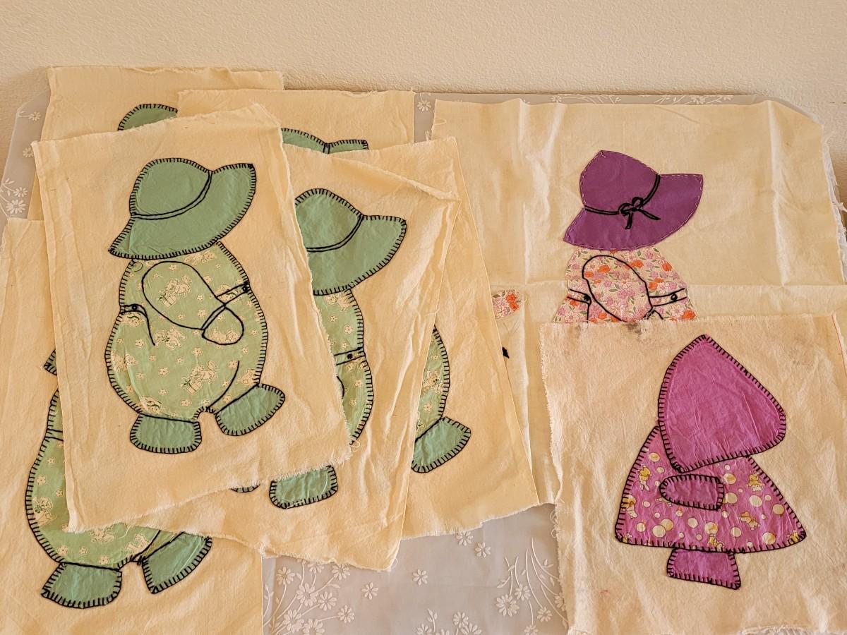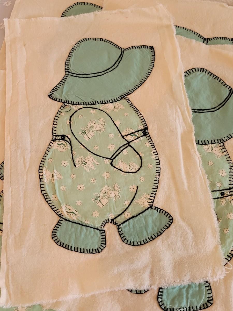 Lot 10: (6) Green Quilting Squares & 2 Purple/Pink Squares (Handmade)