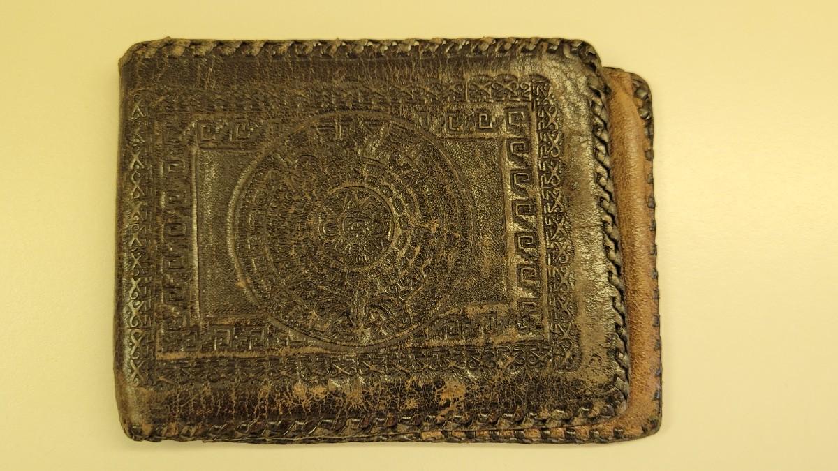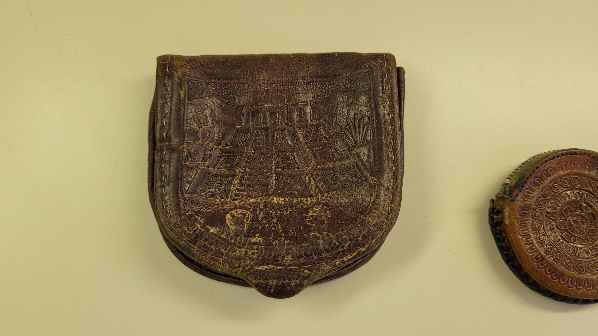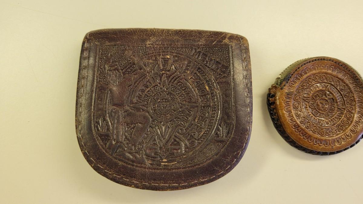Lot 10: Vintage Tooled Mexican Leather Wallets  MesoAmerican Depictions