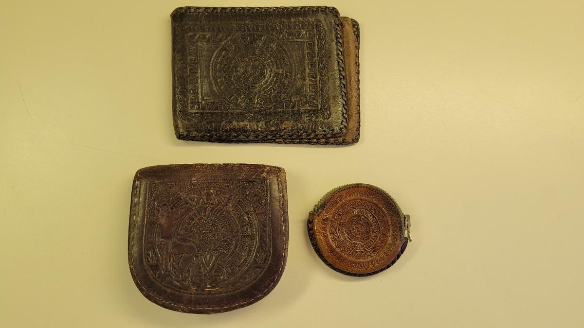 Lot 10: Vintage Tooled Mexican Leather Wallets MesoAmerican Depictions