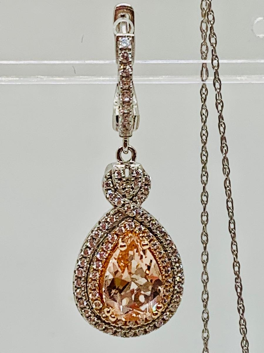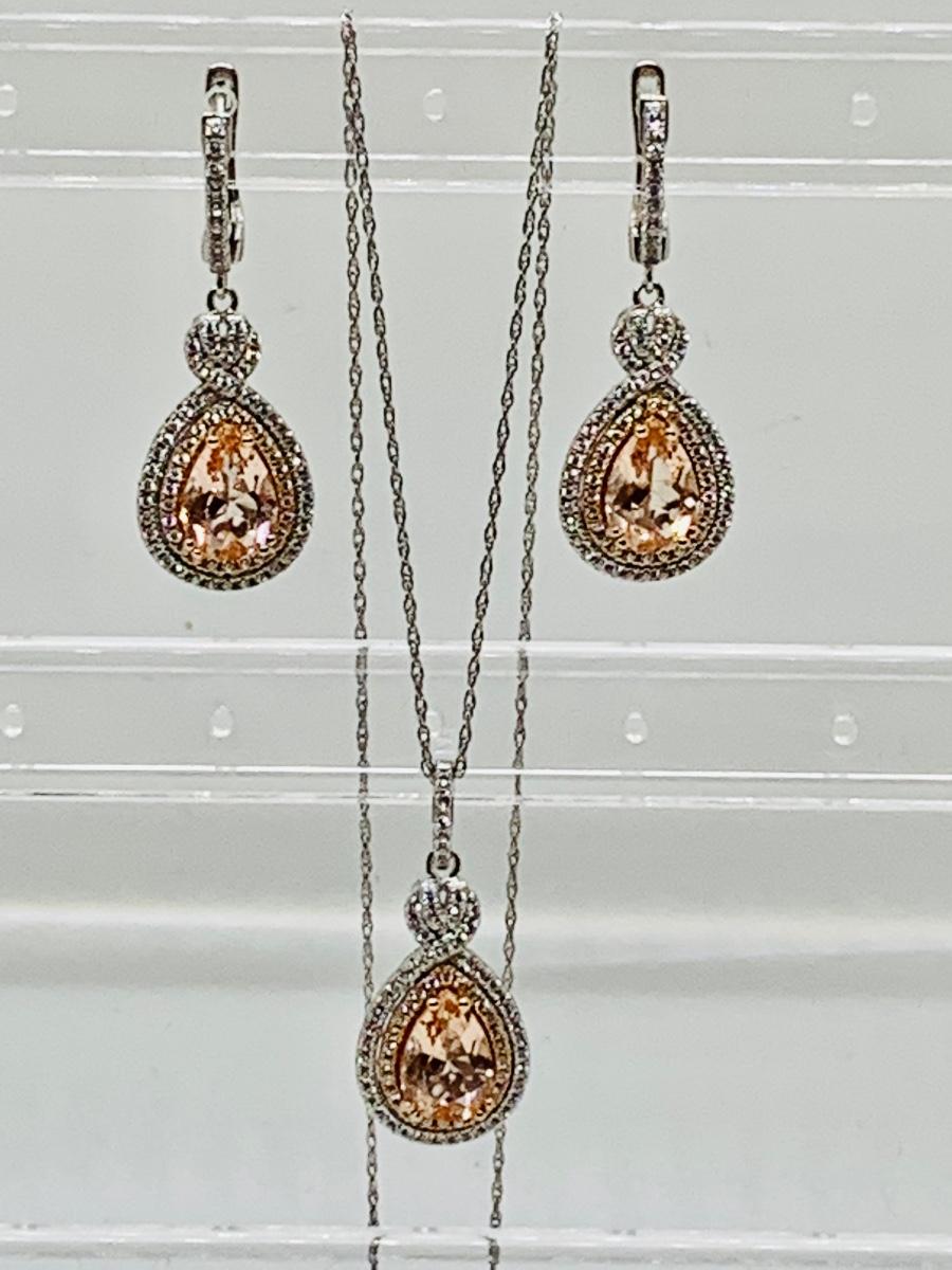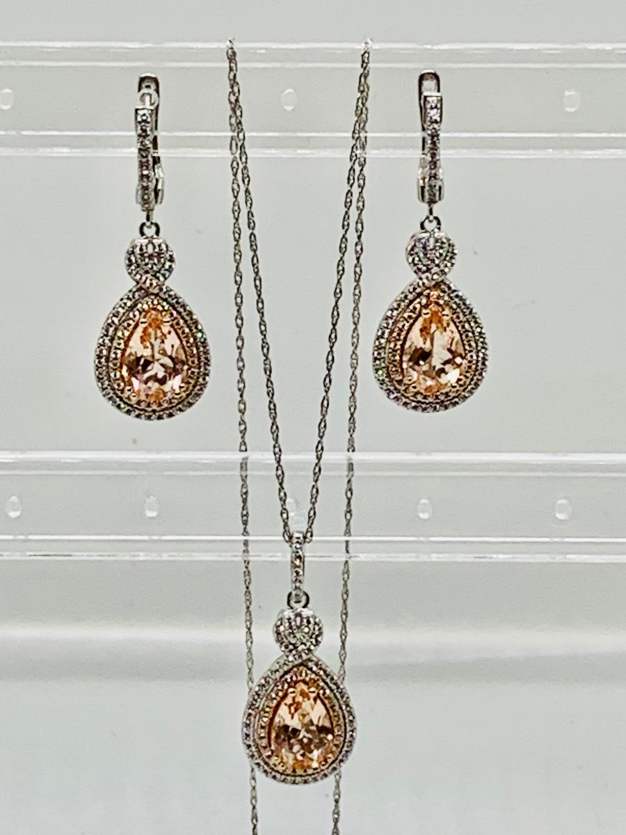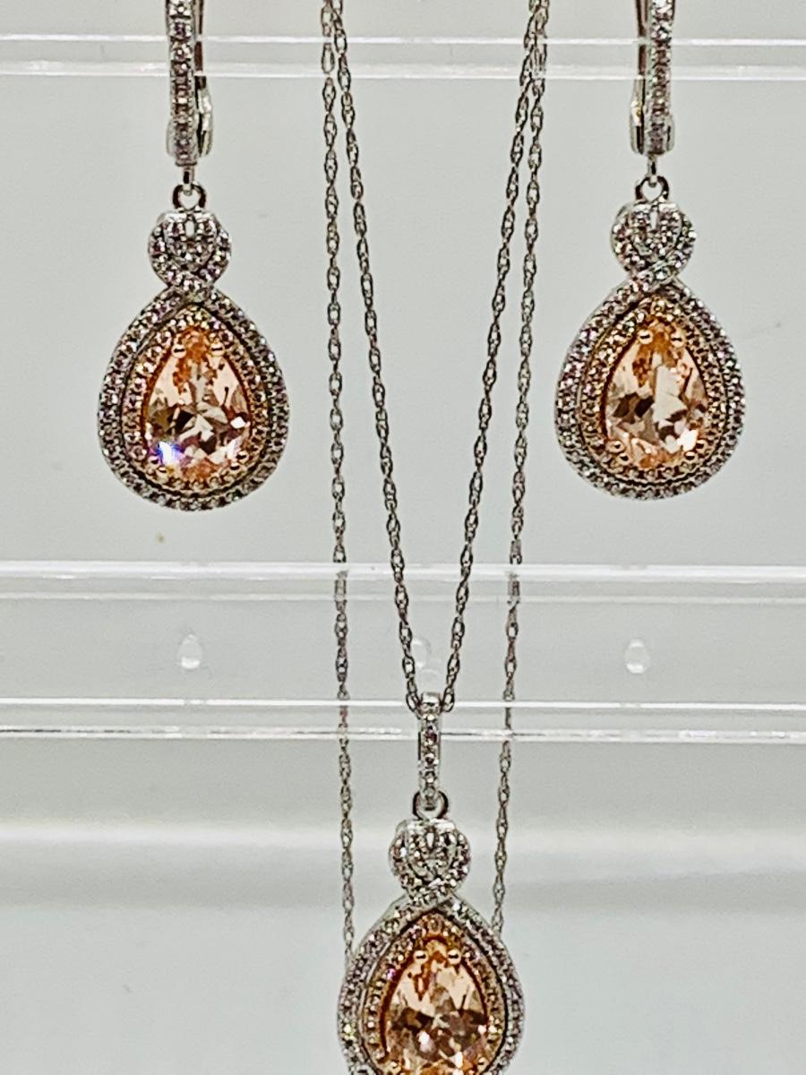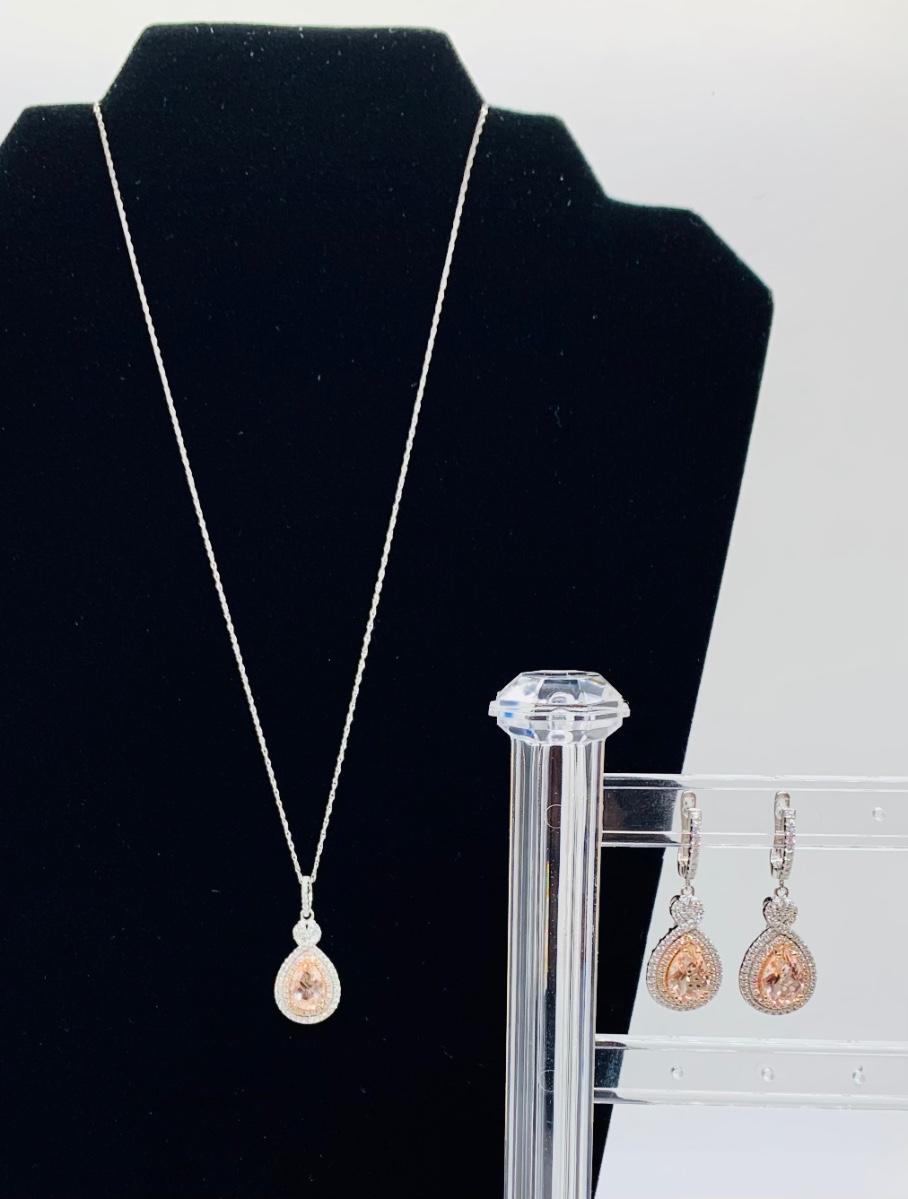 Lot 10: New Morganite &  Cubic Zirconia 925 Silver Necklace & Earring Set