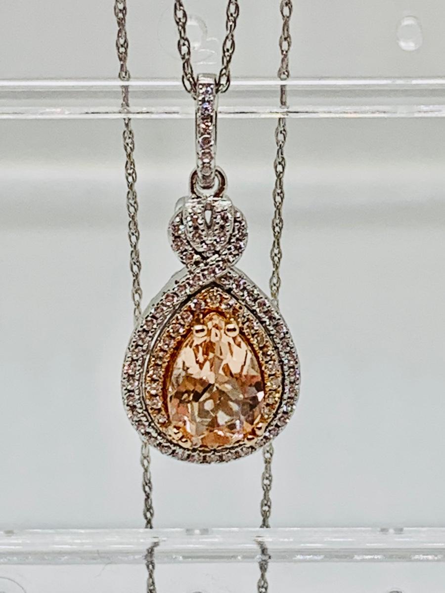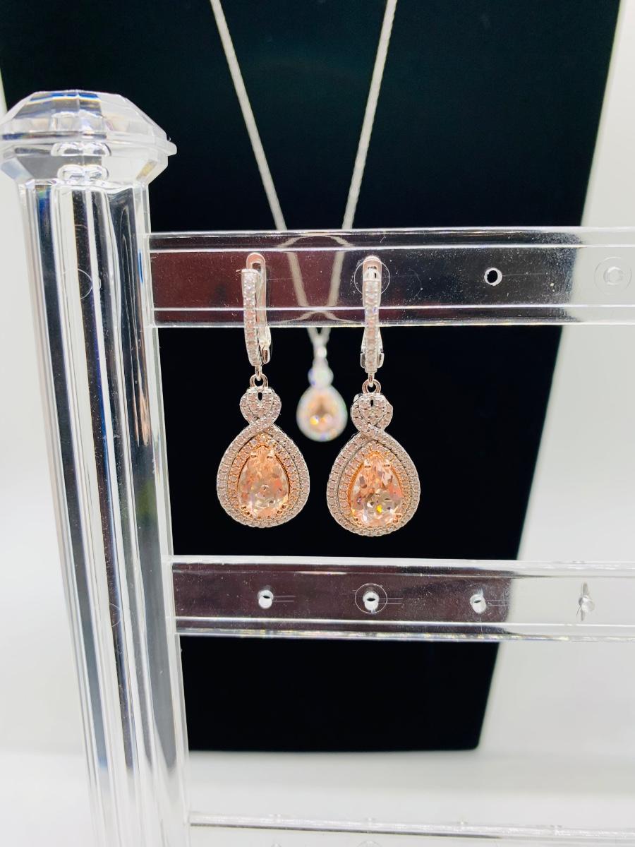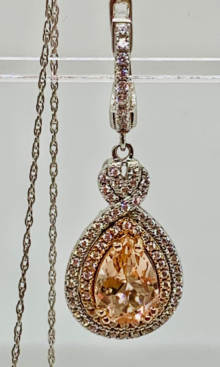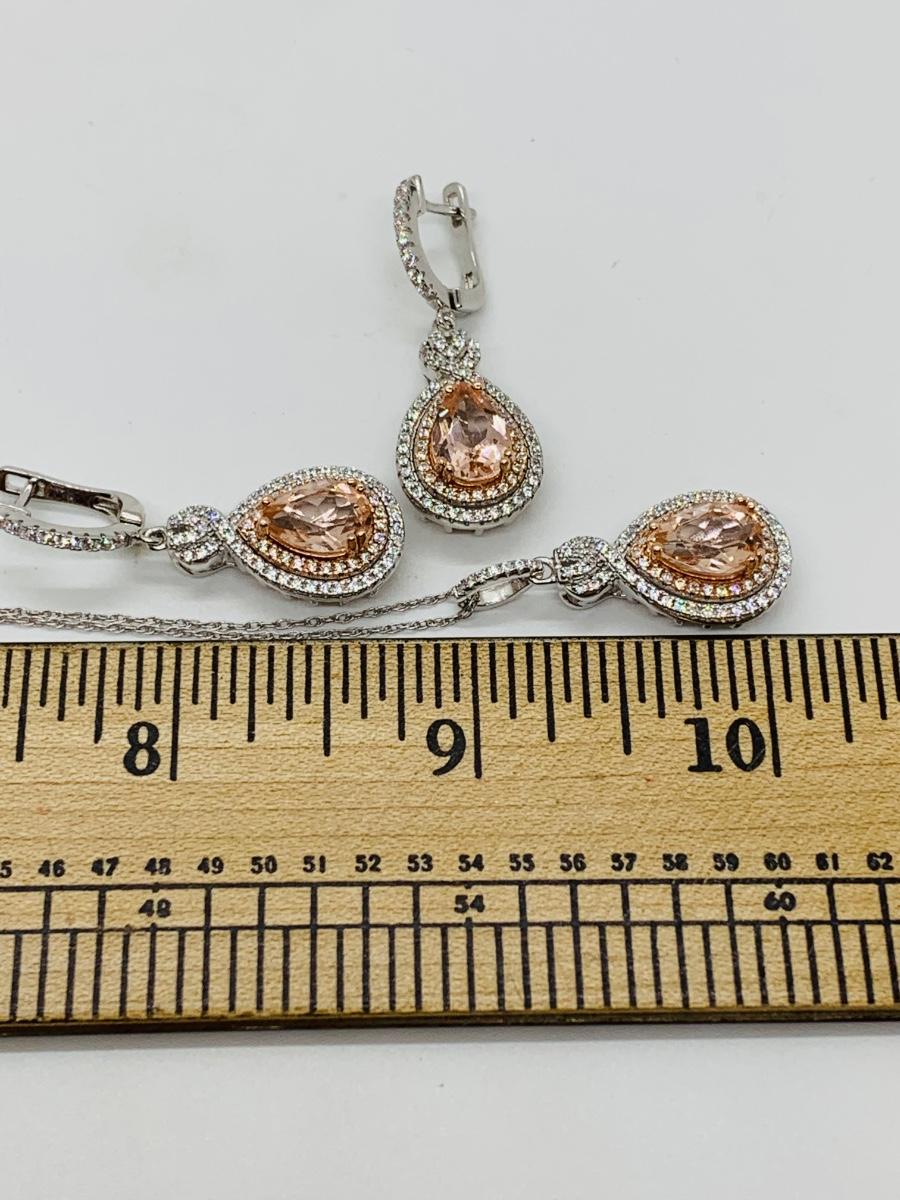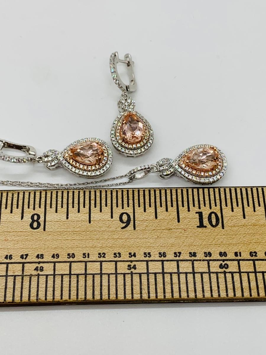 Lot 10: New Morganite &  Cubic Zirconia 925 Silver Necklace & Earring Set