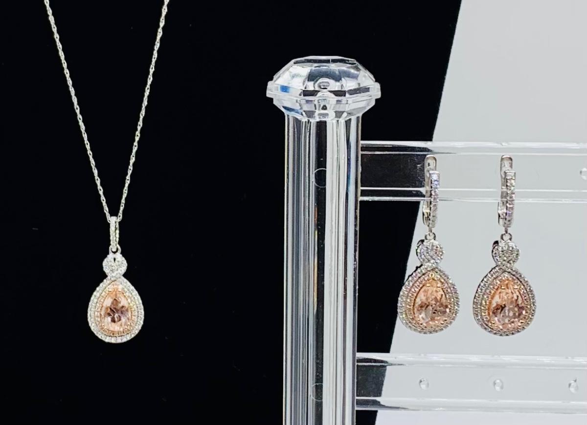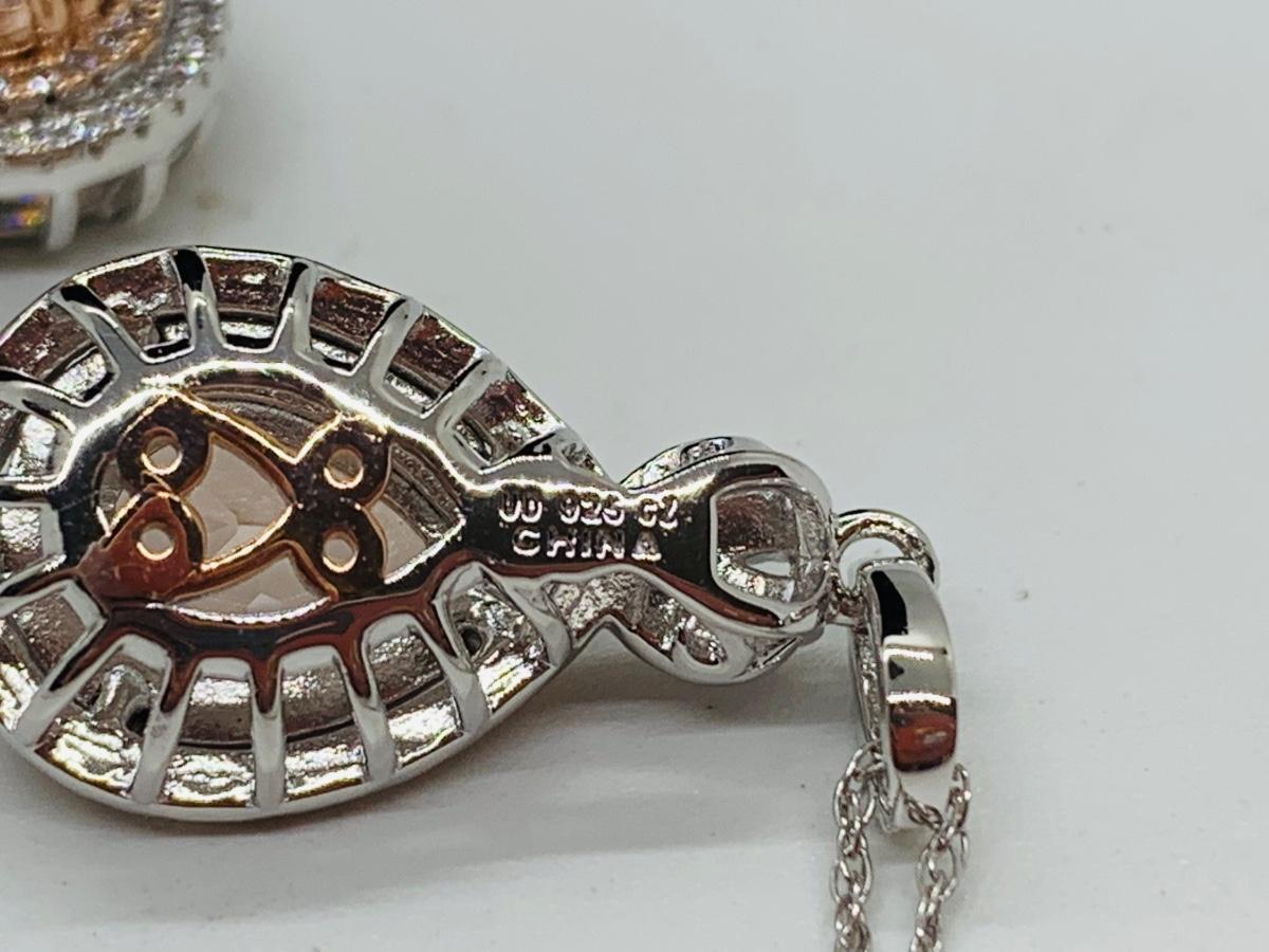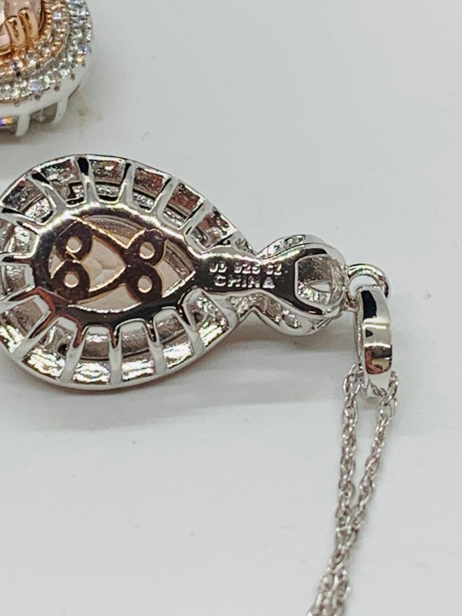 Lot 10: New Morganite & Cubic Zirconia 925 Silver Necklace & Earring Set