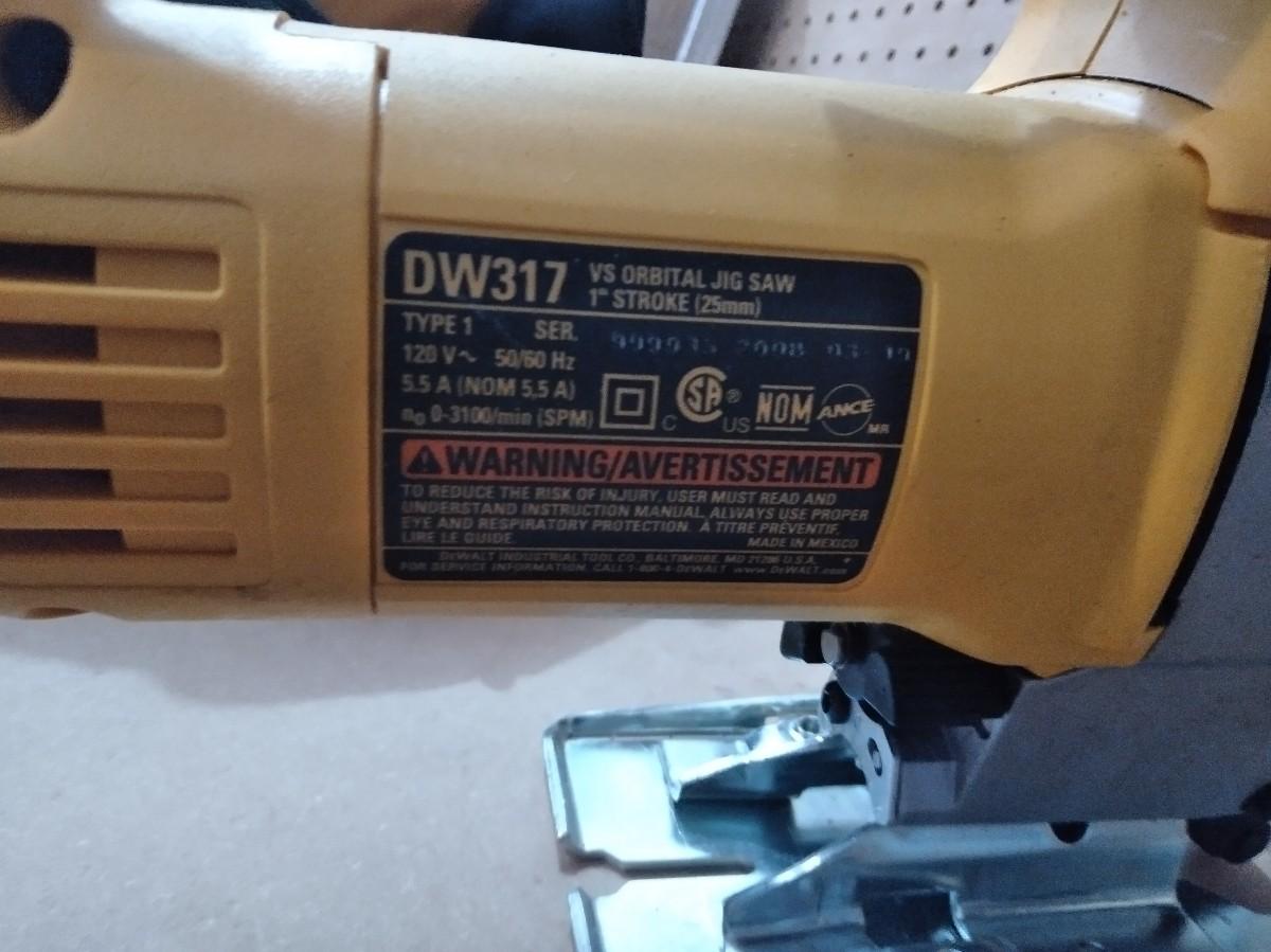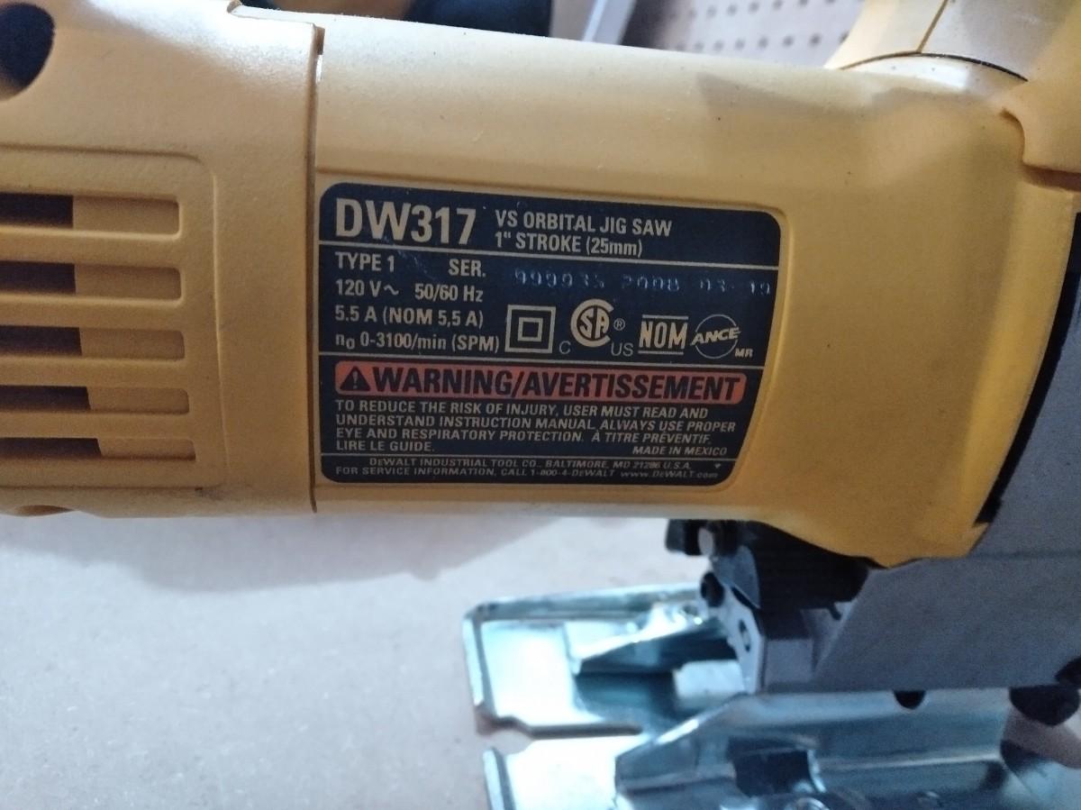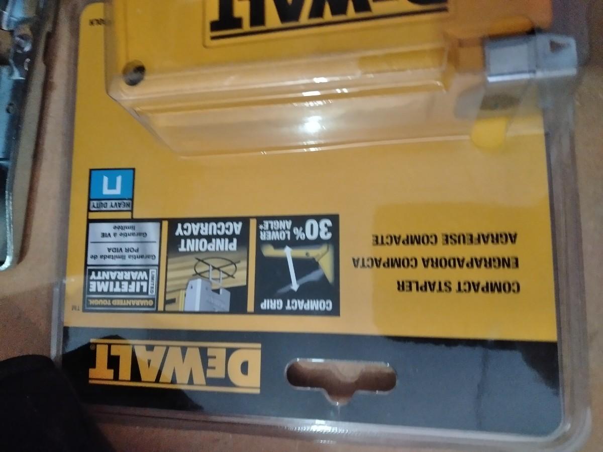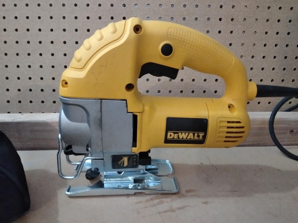DEWALT STAPLER WITH DEWALT JIGSAW DW317 DEWALT UTILITY KNIFE WITH CASE, AND A DEWALT TOOL BAG.