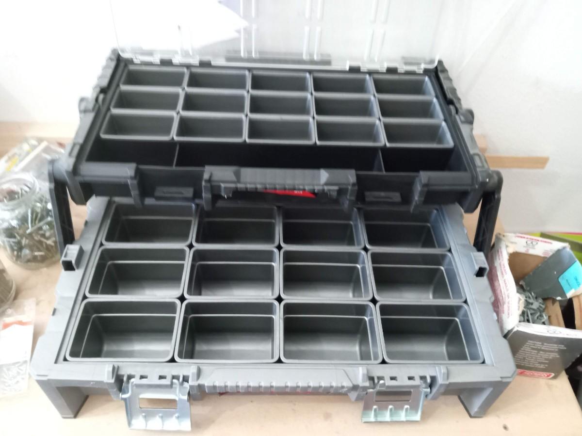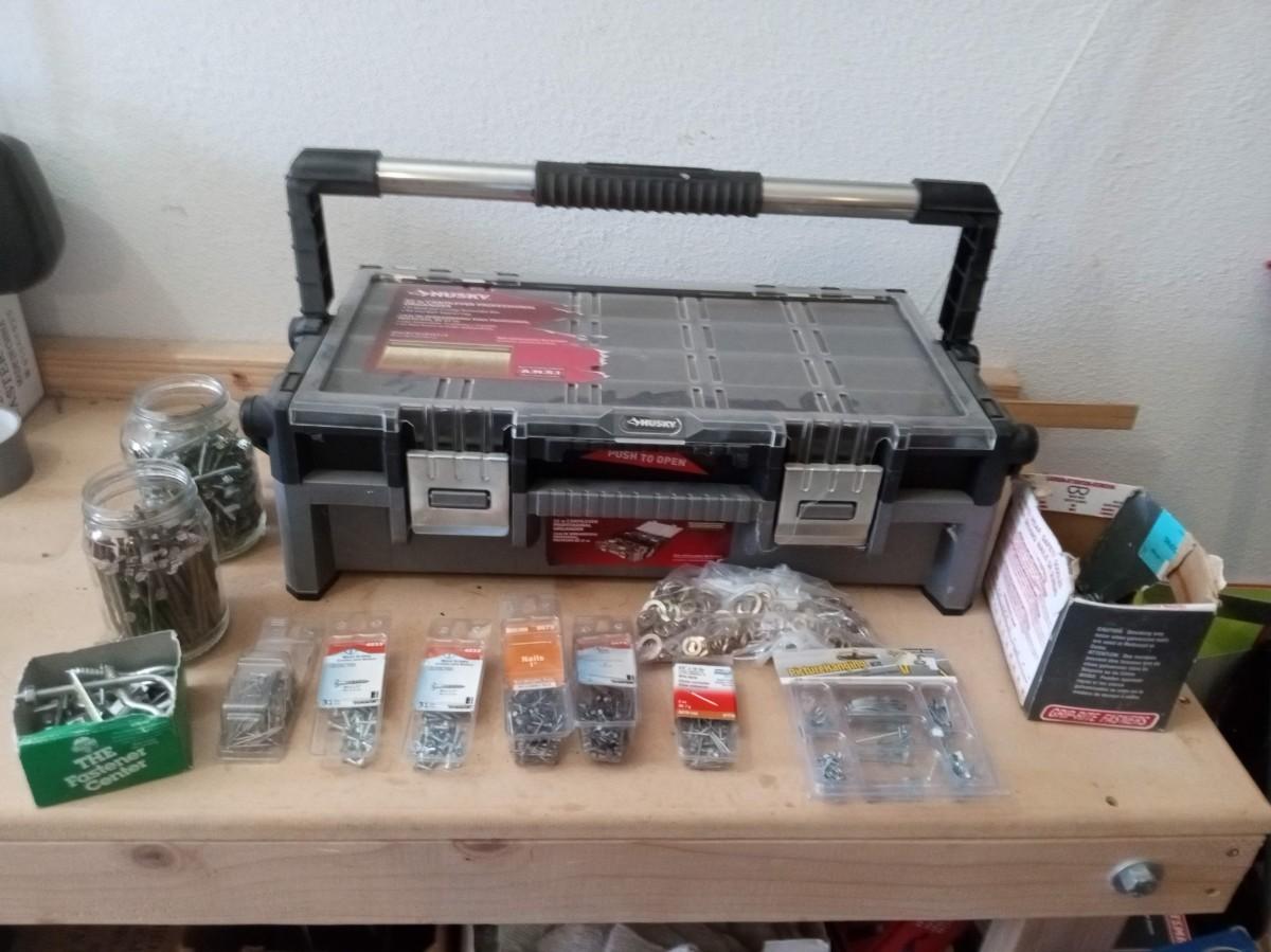 LOT 10 TWO TIER HARDWARE ORGANIZER AND A VARIETY OF HARDWARE