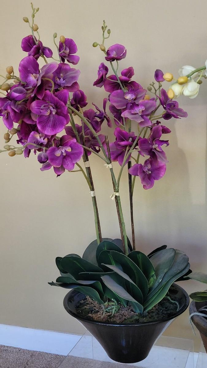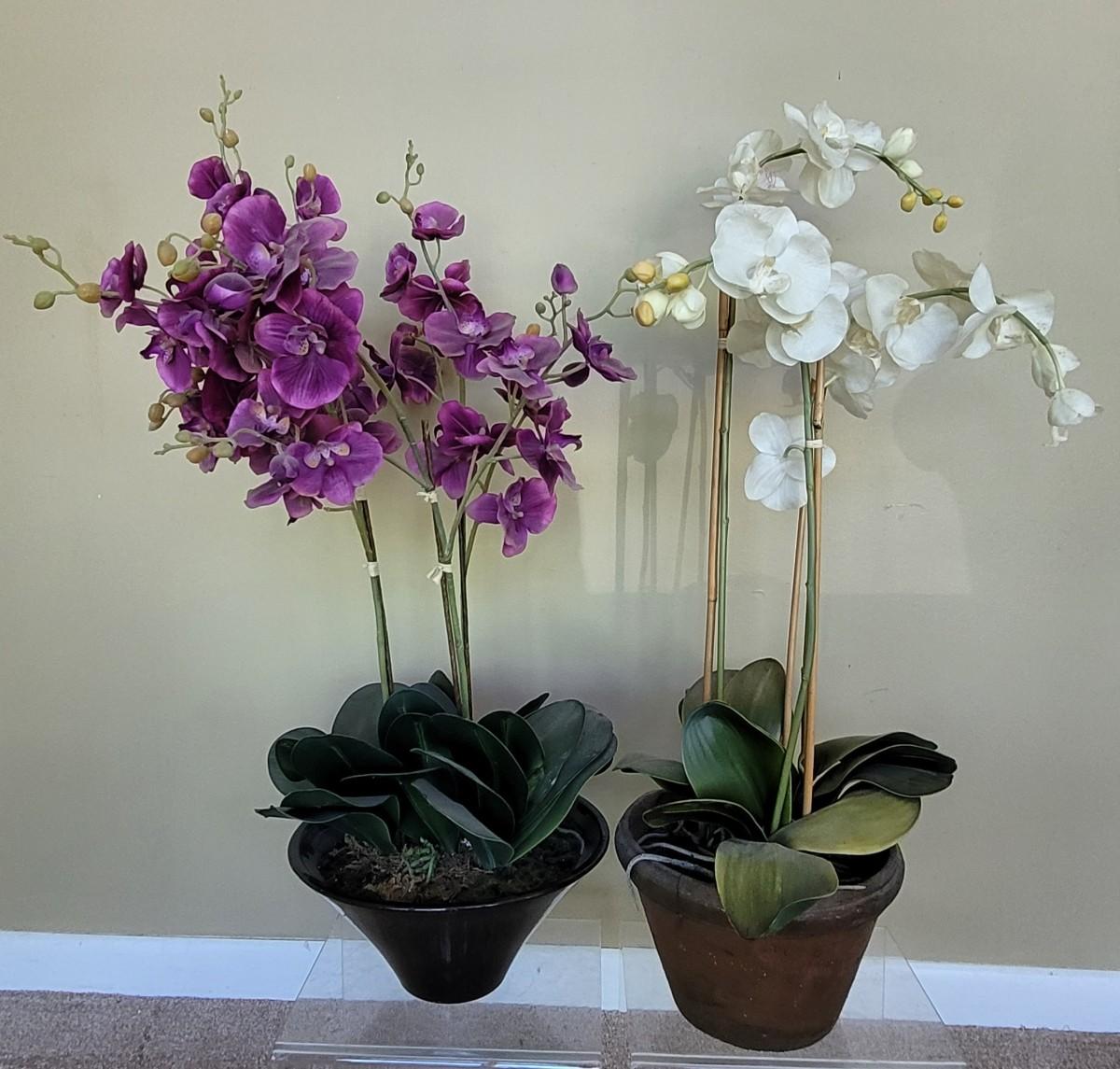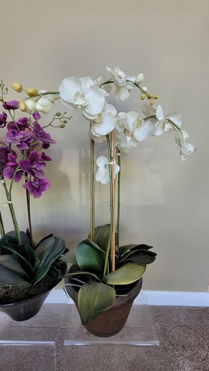 Lot 10: (2) Large Faux Orchid Potted Plants