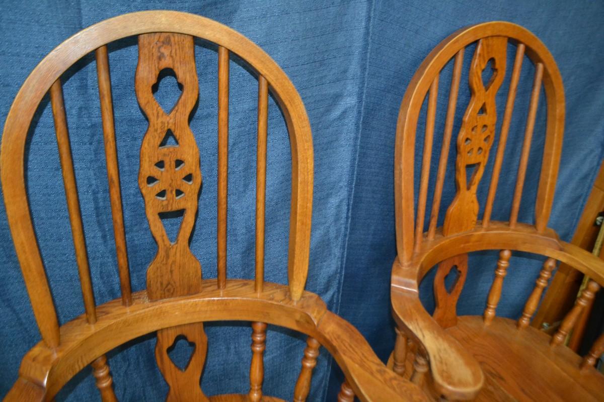 LOT 10. PAIR OF OAK WINDSOR DINING ARM CHAIRS