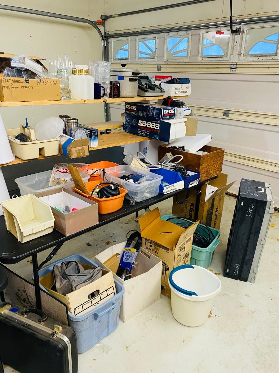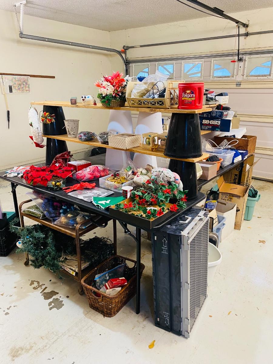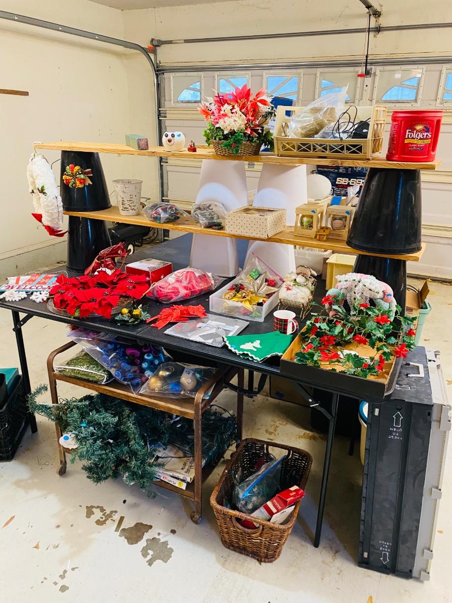 Lot 11 - Garage Center Lot Vintage Christmas Decorations, Vintage Audio and Misc