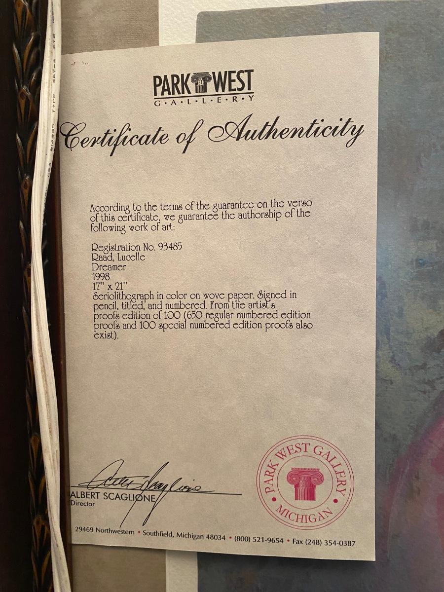 Lot 10: Lucelle Raad “Dreamer” Limited Edition Framed Seriolithograph Art