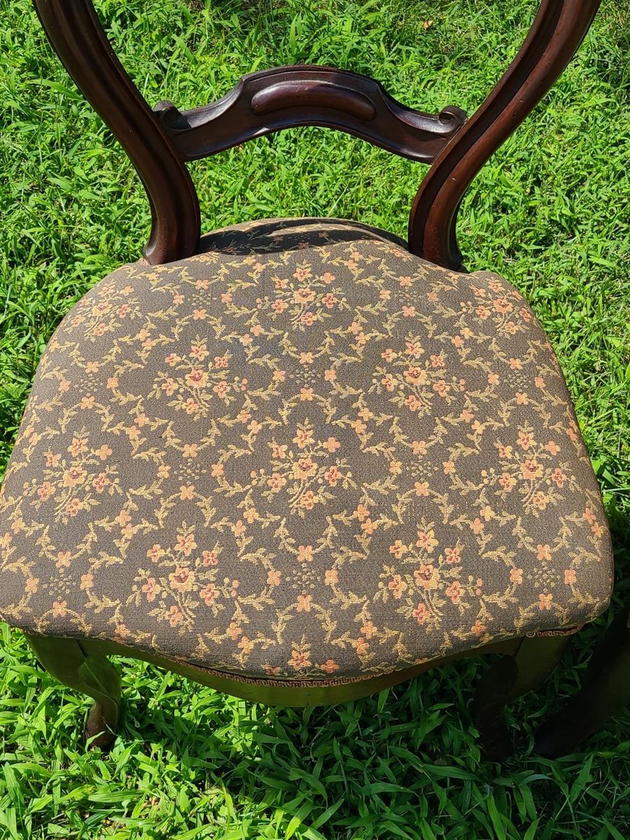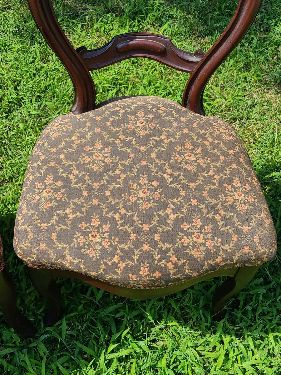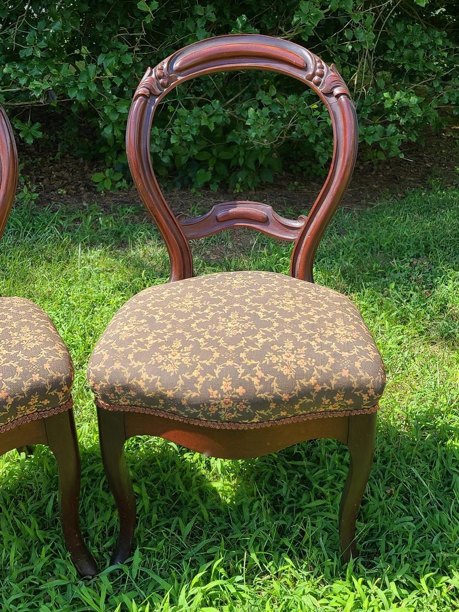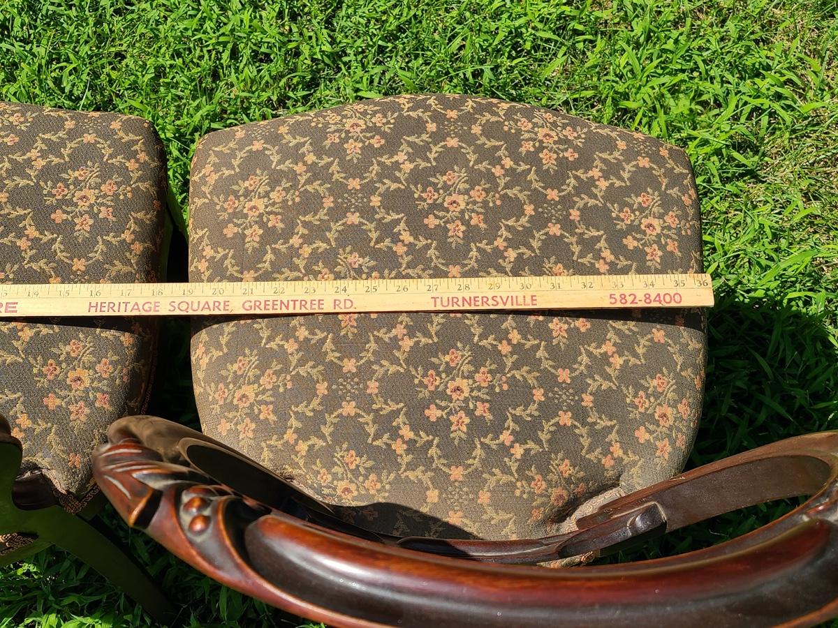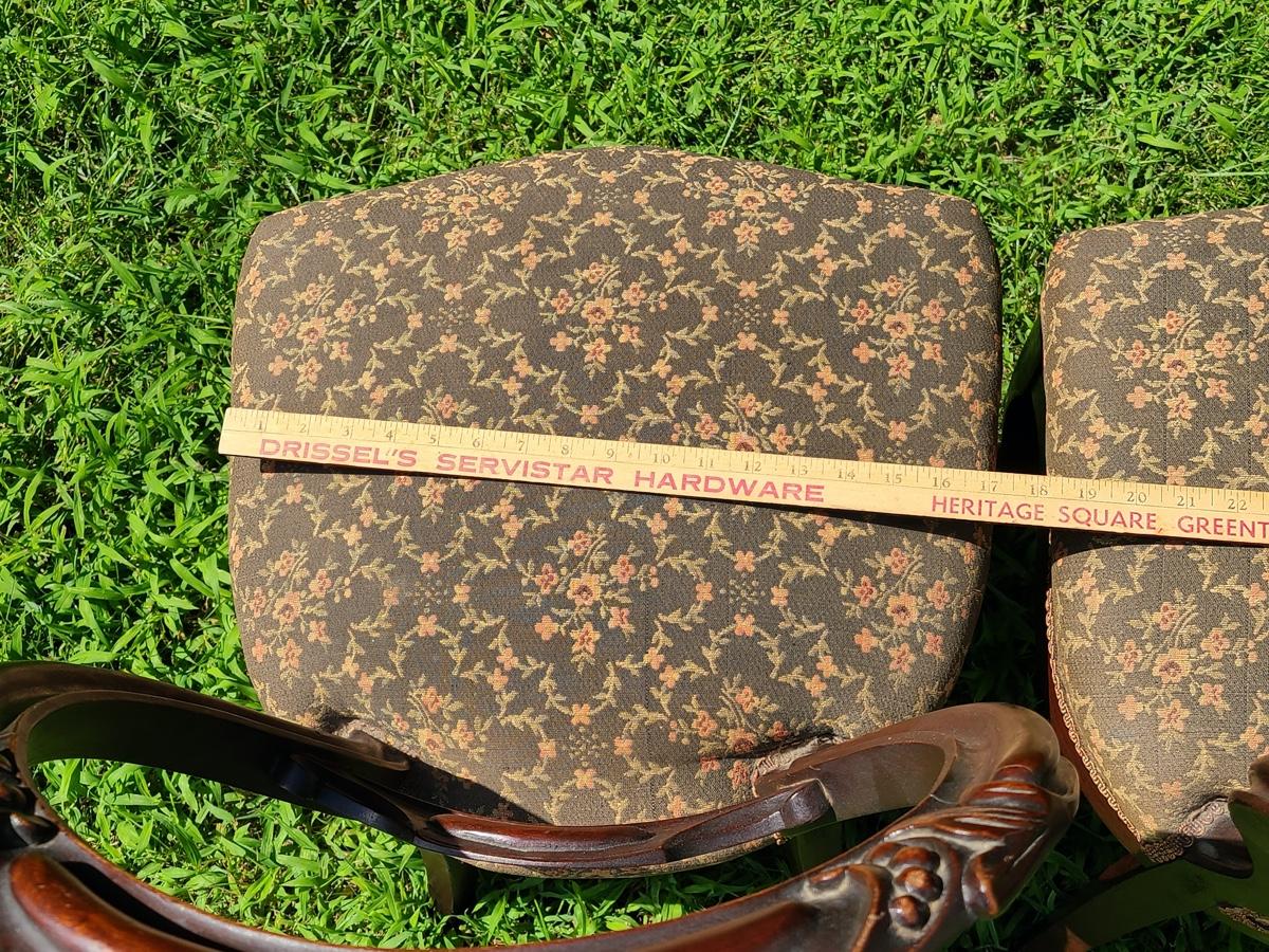 Lot 10: Antique Carved Back Chairs with Upholstery