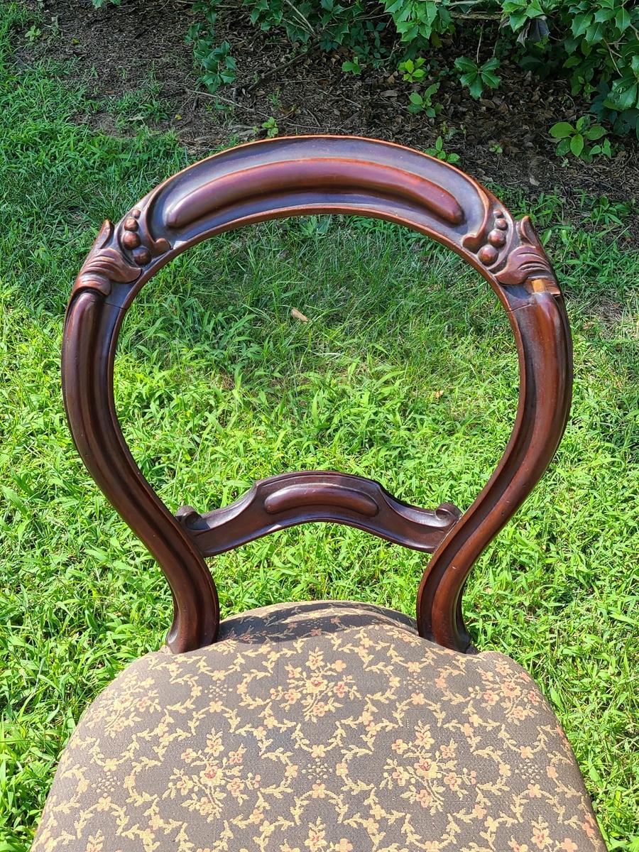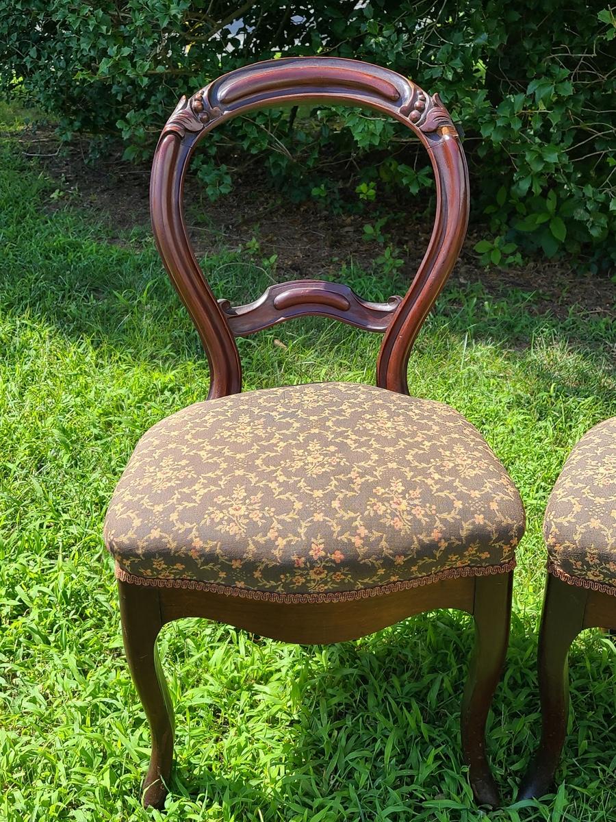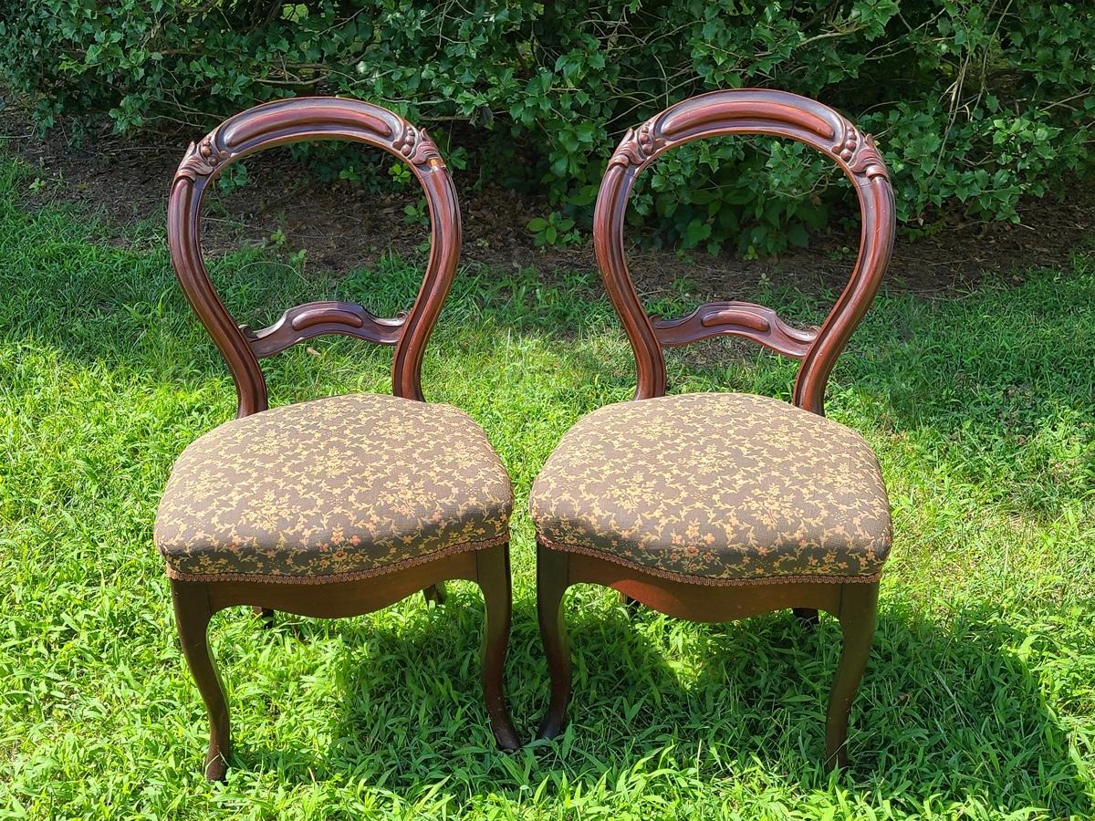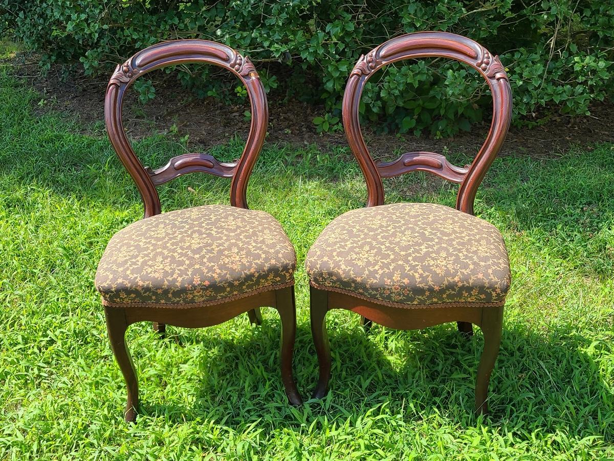 Lot 10: Antique Carved Back Chairs with Upholstery
