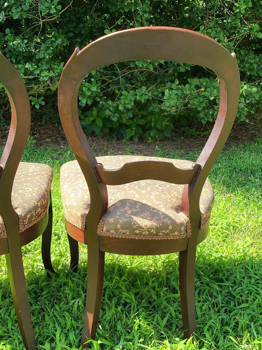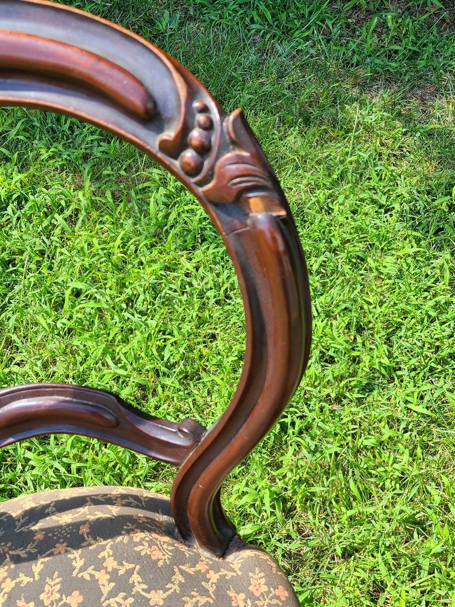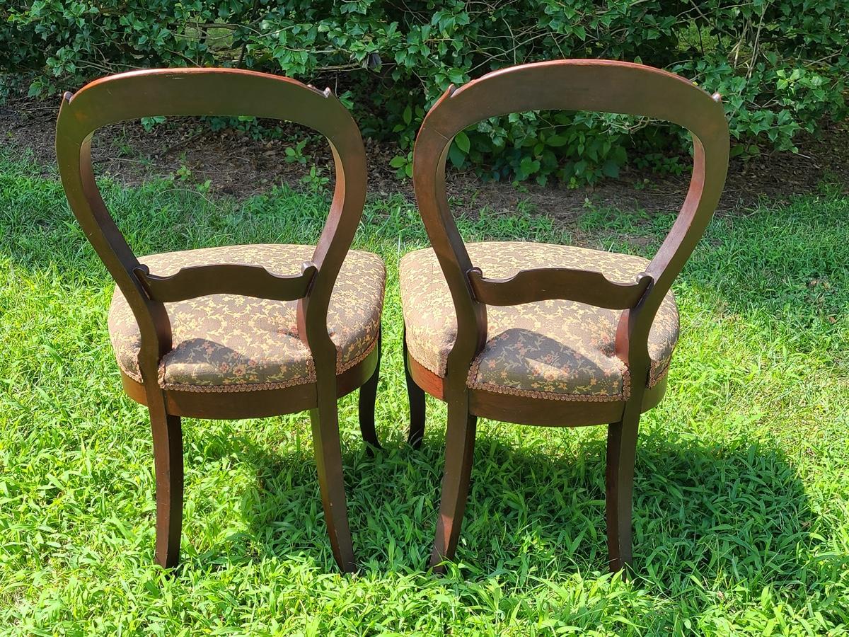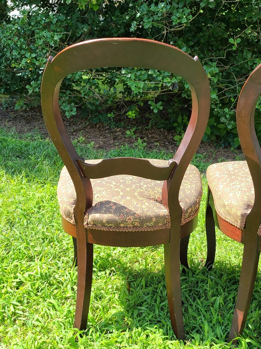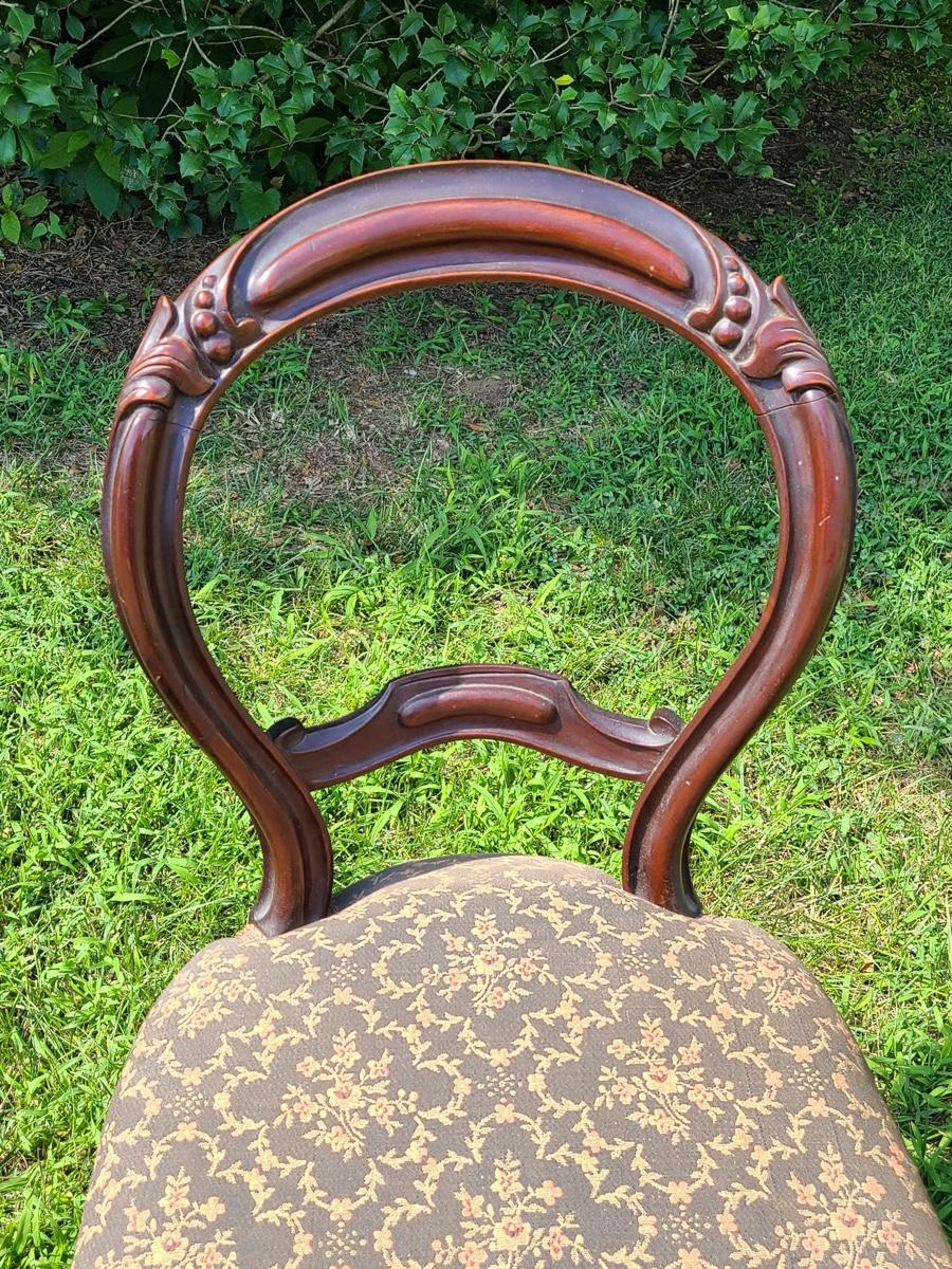 Lot 10: Antique Carved Back Chairs with Upholstery