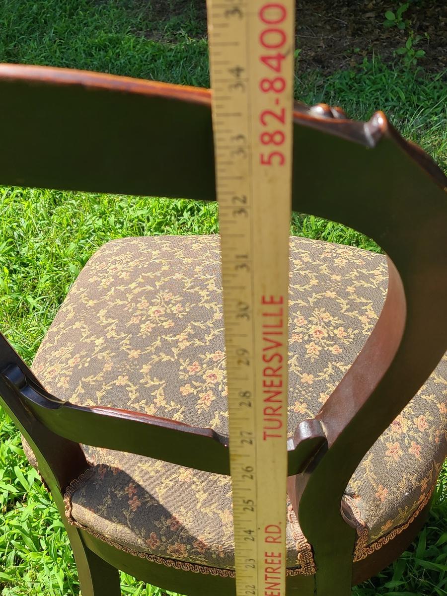 Two carved back antique chairs, the one chair does show some missing wood on the back. These are sturdy and very comfortable but have been in storage and could use a light cleaning or re-upholstered. Please see all pictures as they are the best representation of the items. The pictures show condition, measurements if taken, and what is included in the lot. Due to the large amount that we photograph and the time frame, we are not always able to take measurements. All items unless noted, are pre-owned and have been used. If you purchased furniture, you must bring help. We do not allow one person to carry large furniture out on their own. Bring help, tools and a truck for the safety of our client’s homes, and your personal safety. Company policy. Thank you.