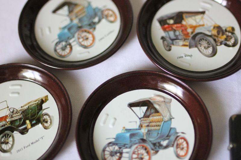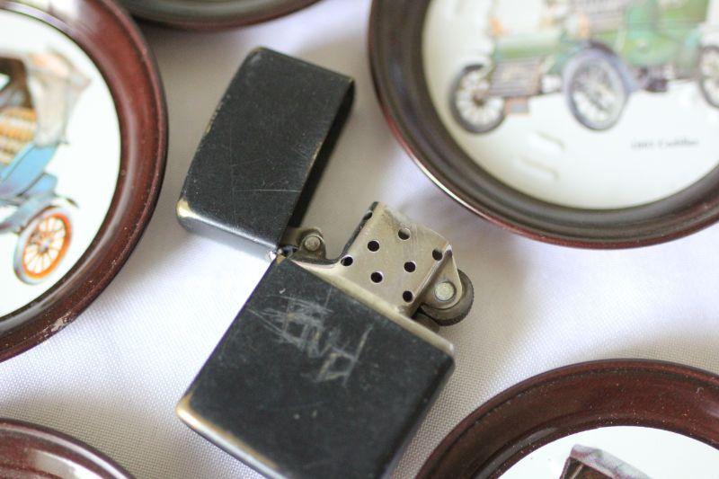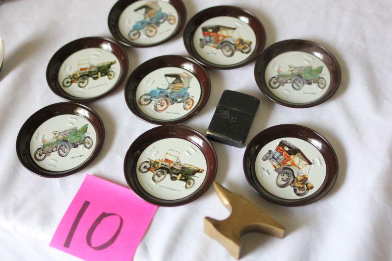 Lot 10 Antique Car Coasters, Zippo Lighter & Brass Anvil