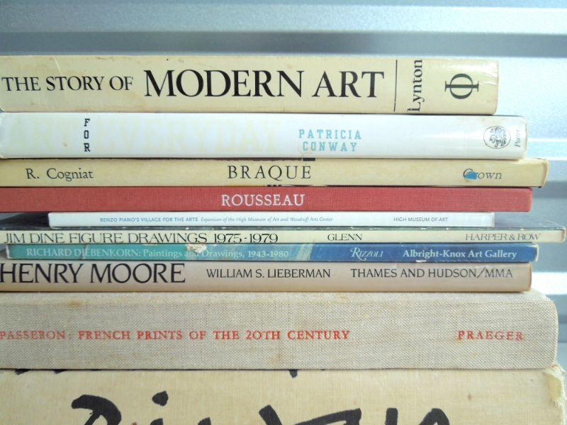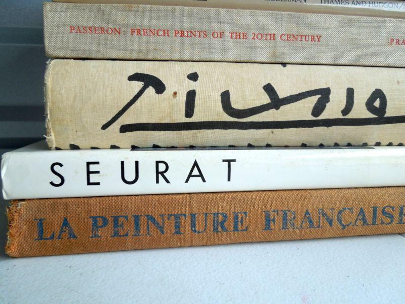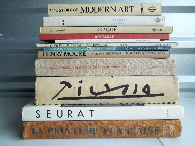 Total of 12 books- many linen bound: Seurat, Picasso book (beautiful display piece), Braque, Rousseau, Henry Moore, et al.