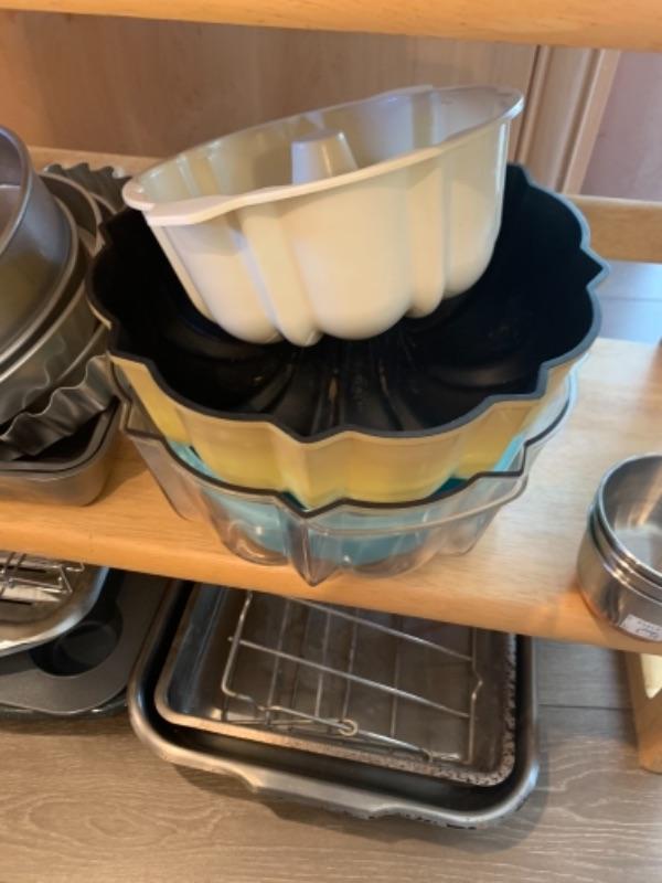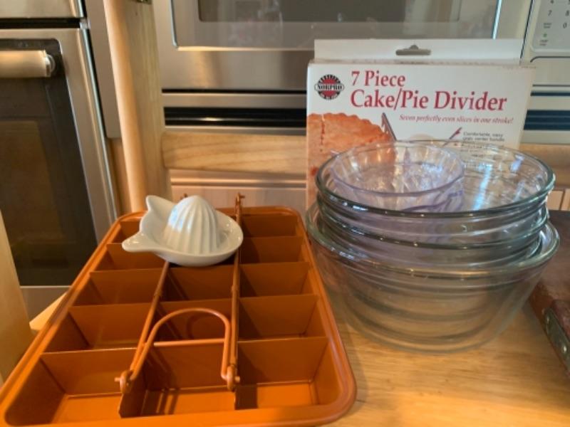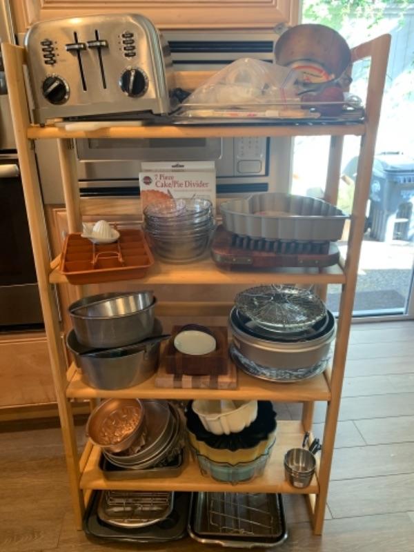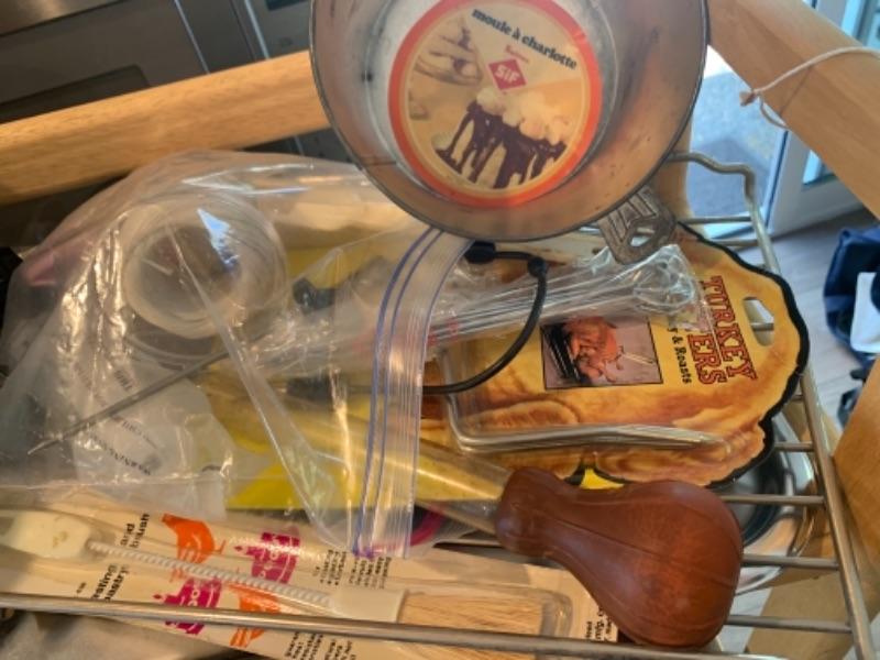 Lot 10. Assorted gourmet bakeware (cake pans, forms, muffin pans, Bundt pans),Cuisinart toaster, turkey prep kit etc.--$75