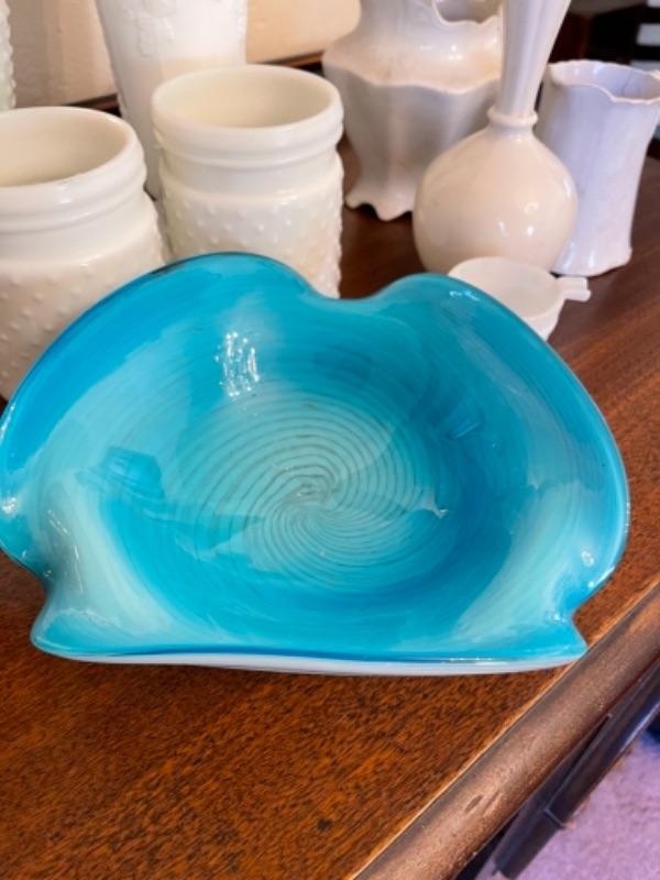 Lot 10. Assorted milk glass, pottery, Lenox, glass bowls, music box, etc.--Was $45 - - Now $25
