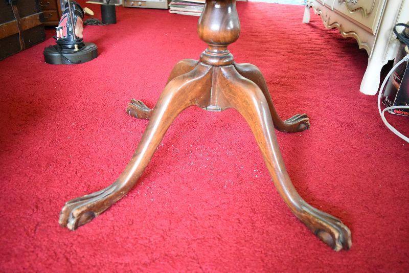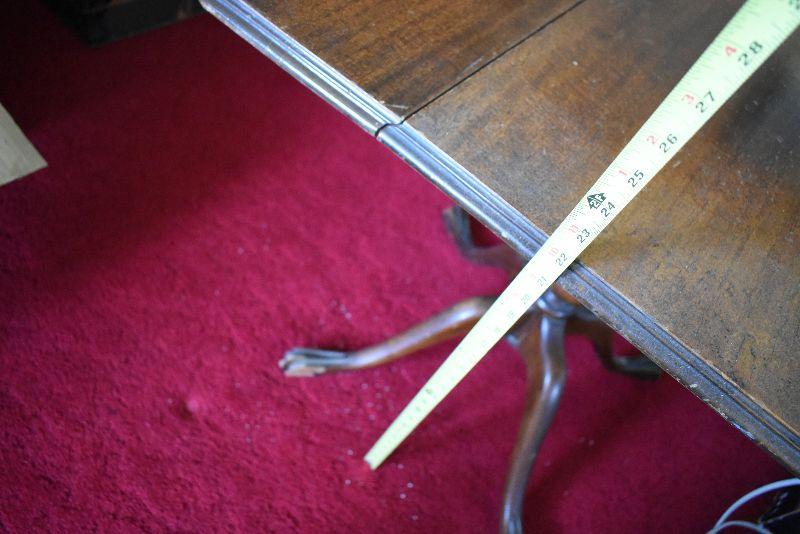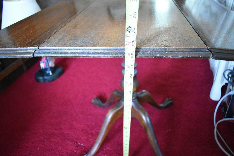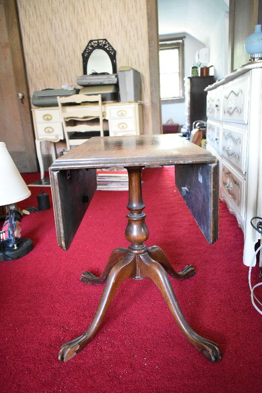 Vintage drop leaf table with claw feet legs. Shows wear, but a very nice piece. Bring help to move from second floor.