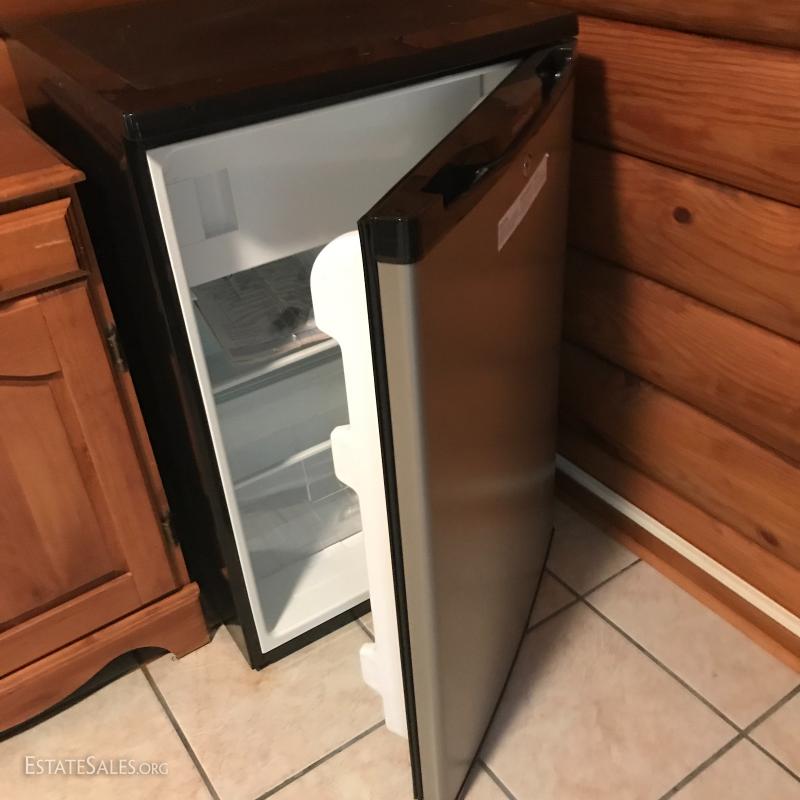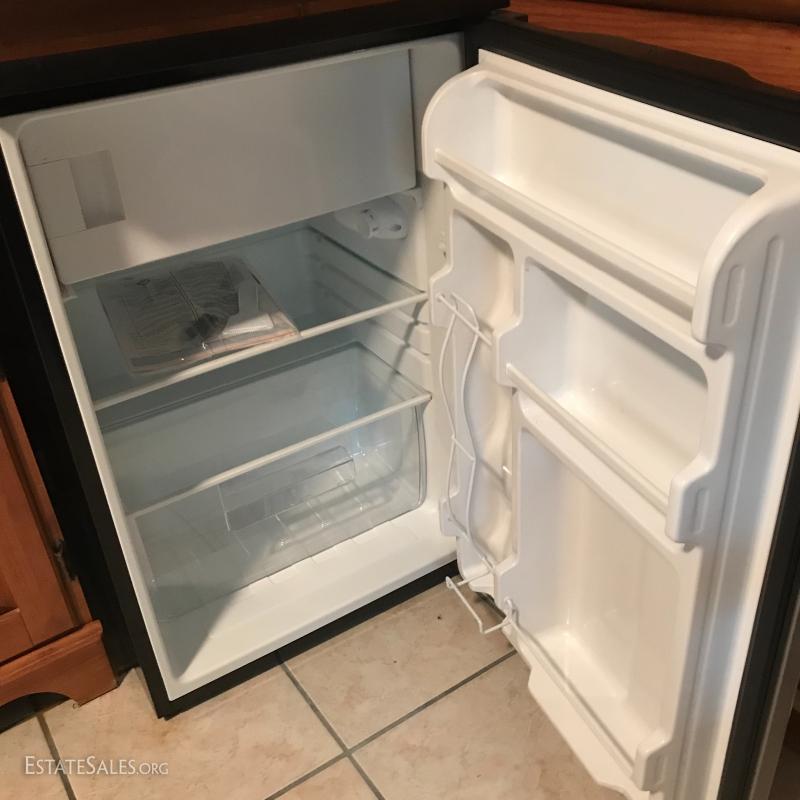 Frigidaire compact refrigerator with freezer and key to lock. 22"l x 21.5"w x 33.5"h. No shipping. Local pick up only in Asheville, NC.