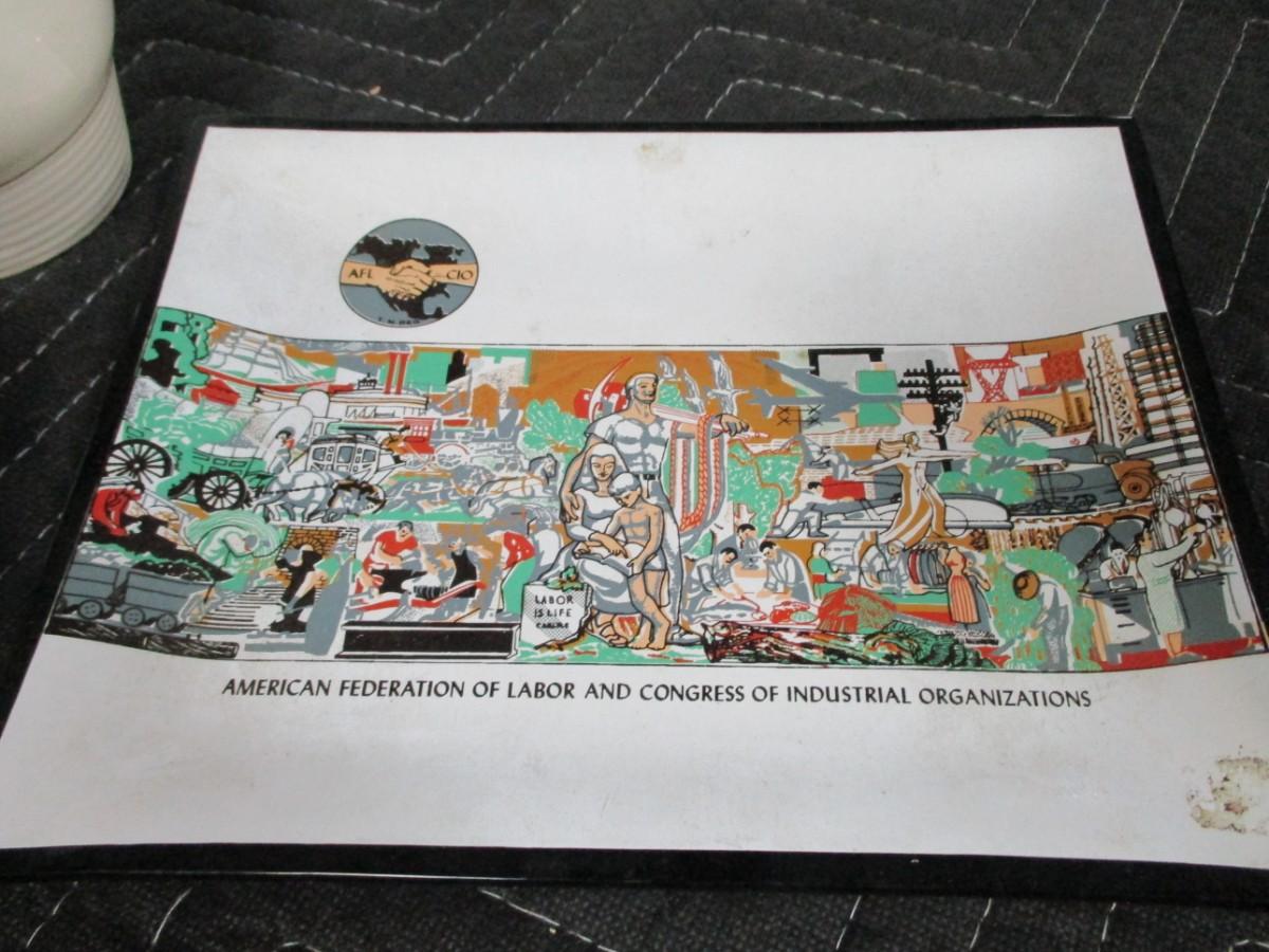 AFL CIO Lumen Martin Winter Mural Flint Glass Workers Union Pin Tray VTG Plate