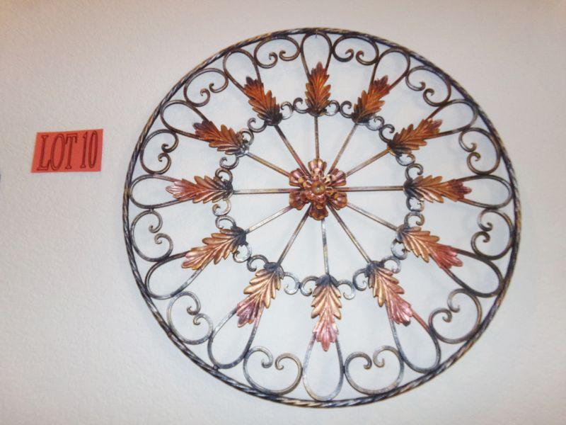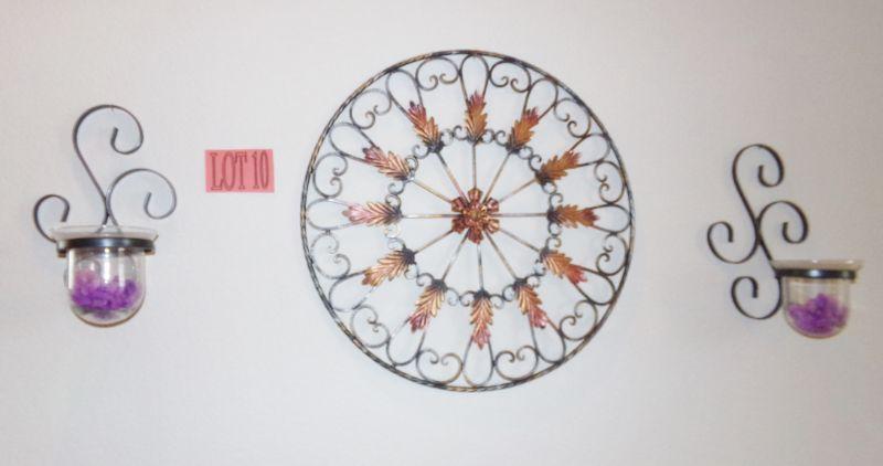 Iron medallion measures 22" circumference plus 2 candle iron wall sconces