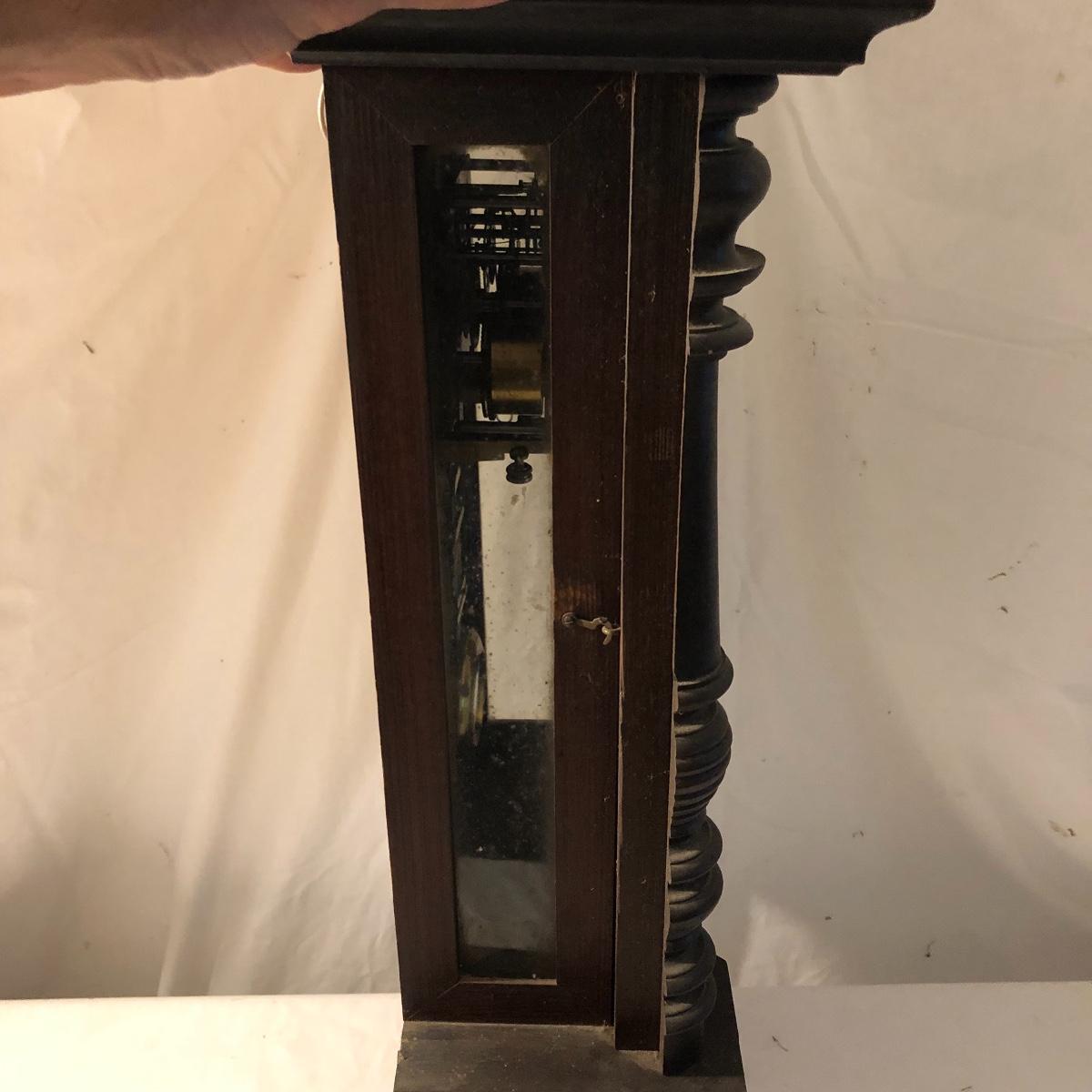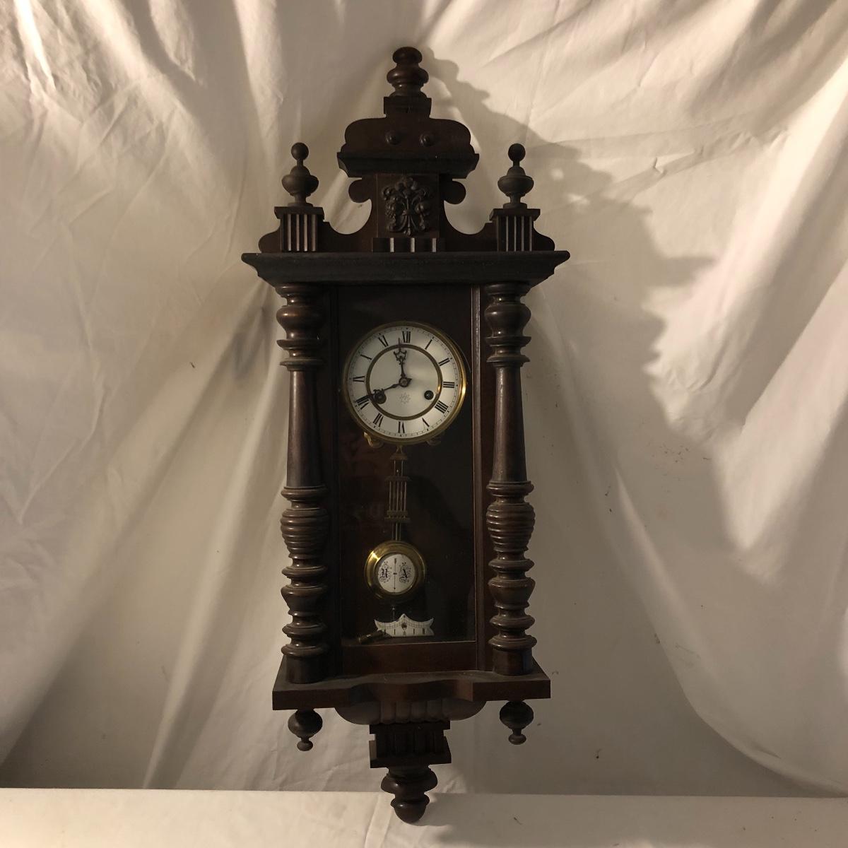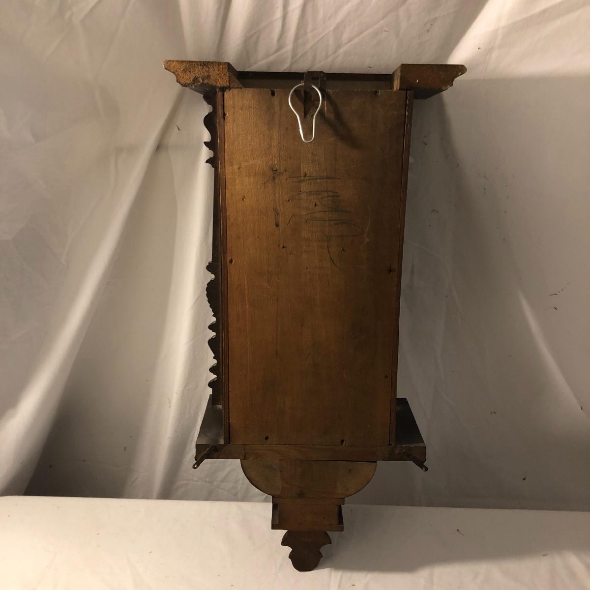 This vintage Junghans wall clock show quality workmanship. It has a wooden case with glass front and sides and includes key.