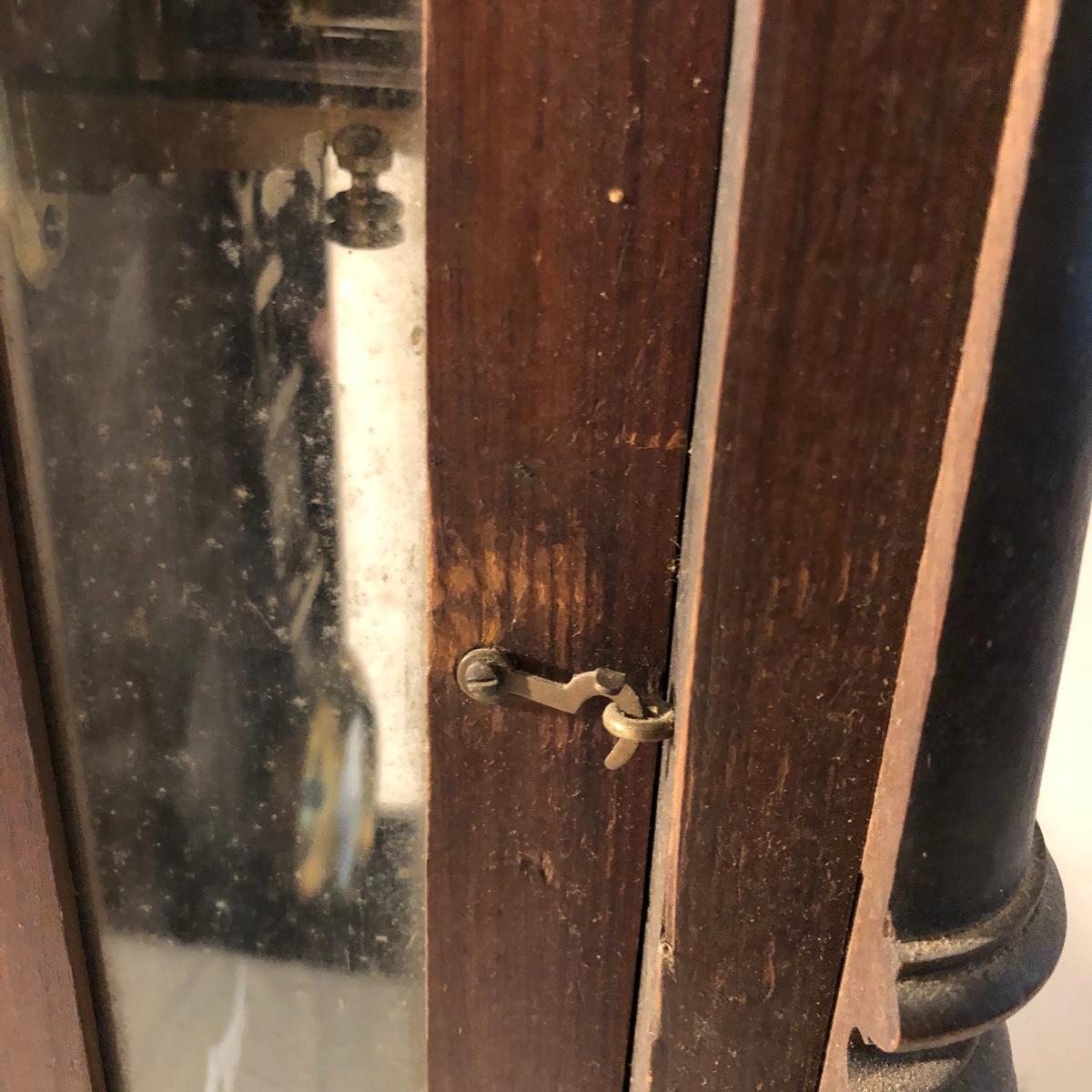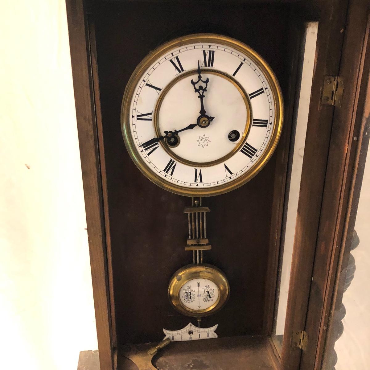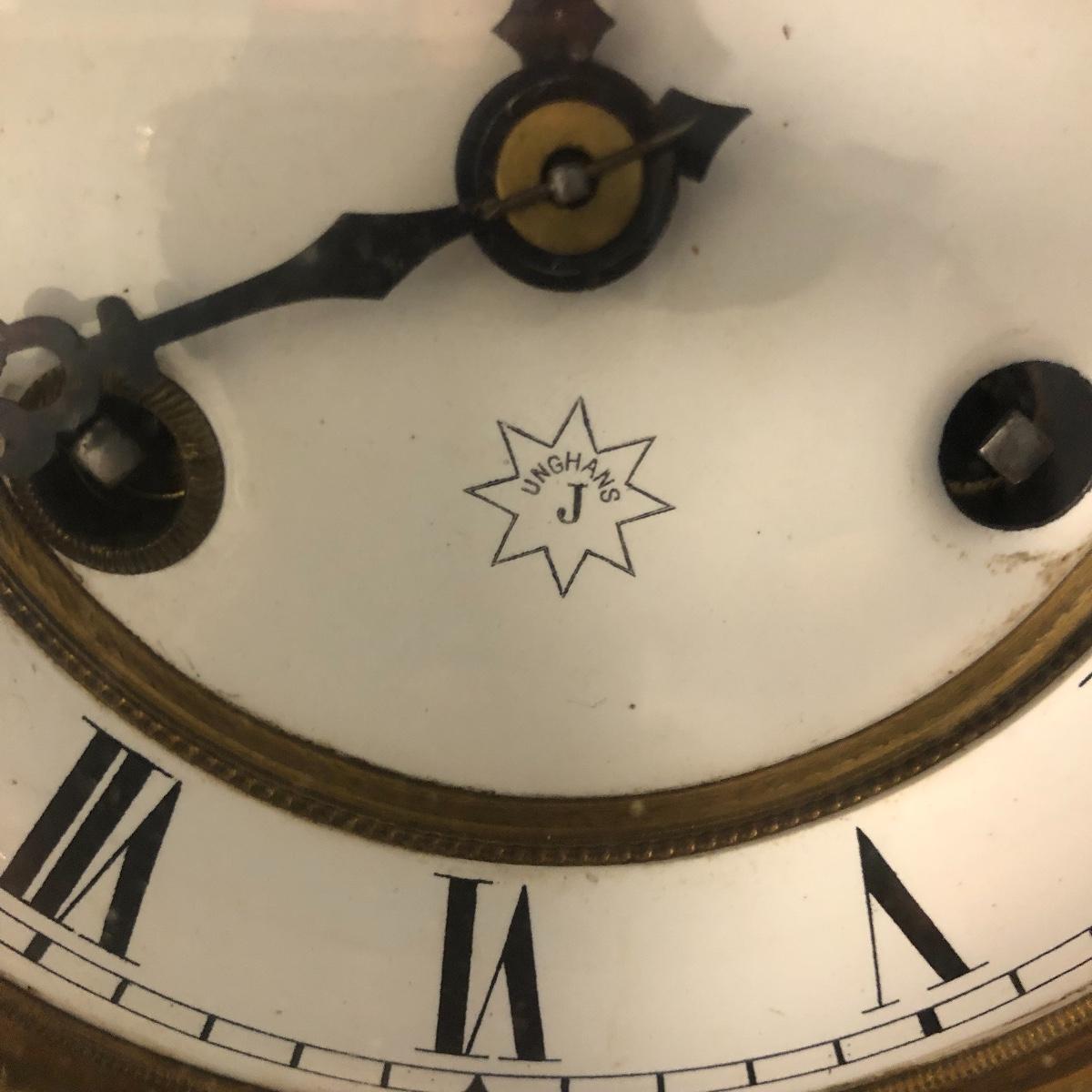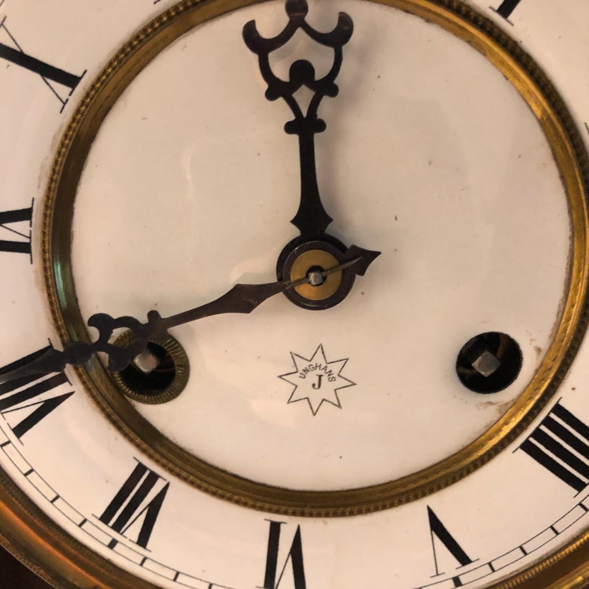 This vintage Junghans wall clock show quality workmanship. It has a wooden case with glass front and sides and includes key.