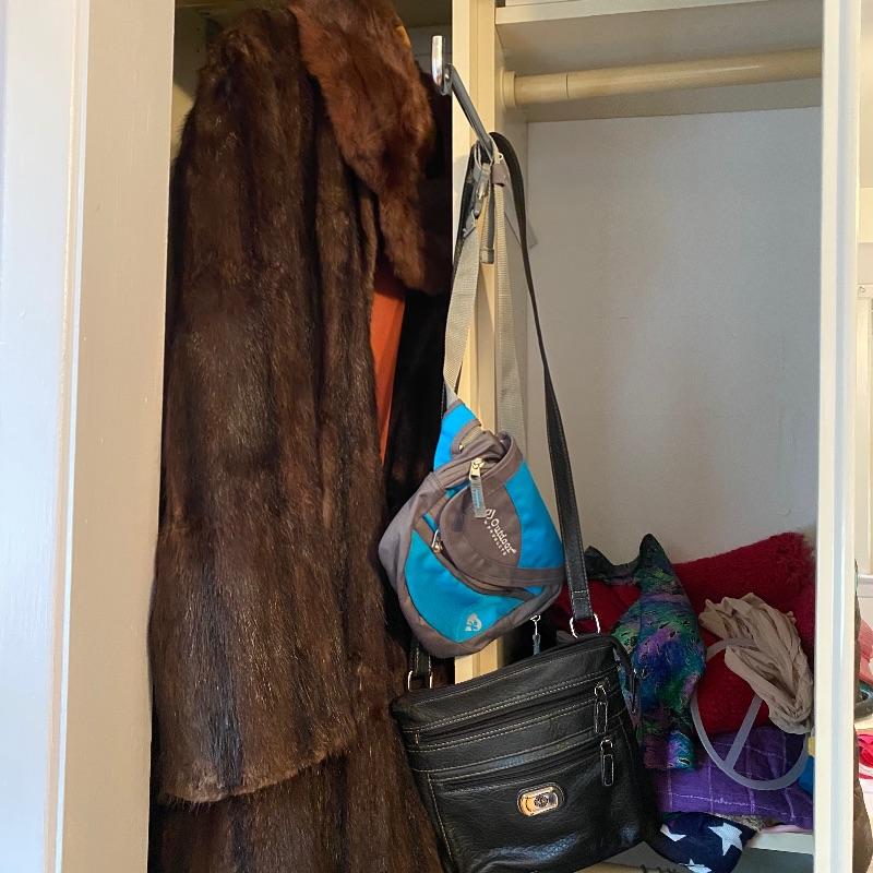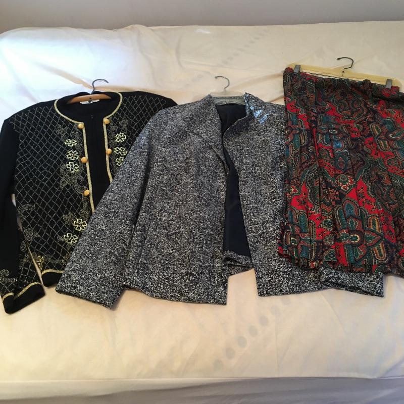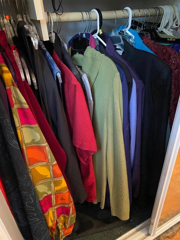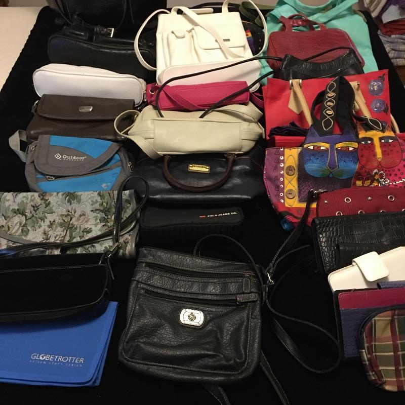 This collection of ladies clothing and accessories will keep you dressed for the foreseeable future with its plethora of clothes, purses and hats. Lot includes a nice full length mink coat that was tailor made and embroidered with initials. Purses by Strada, two Lauren Burch feline design purses, two Rosetti, Remi, Capetians and more purses. Also includes hats in a variety of styles and materials and ladies clothing by Norton, Brilliante, Alex, Dressbarn, Attention ROT, Liz Claiborne and more. Most clothing is sized 1X-2X and shoes are size 10.