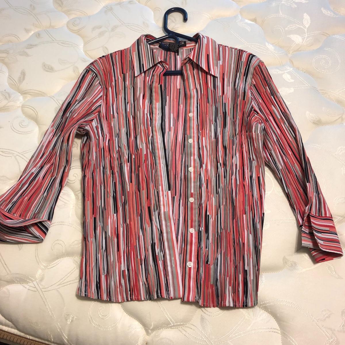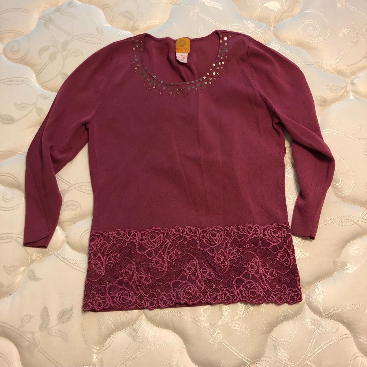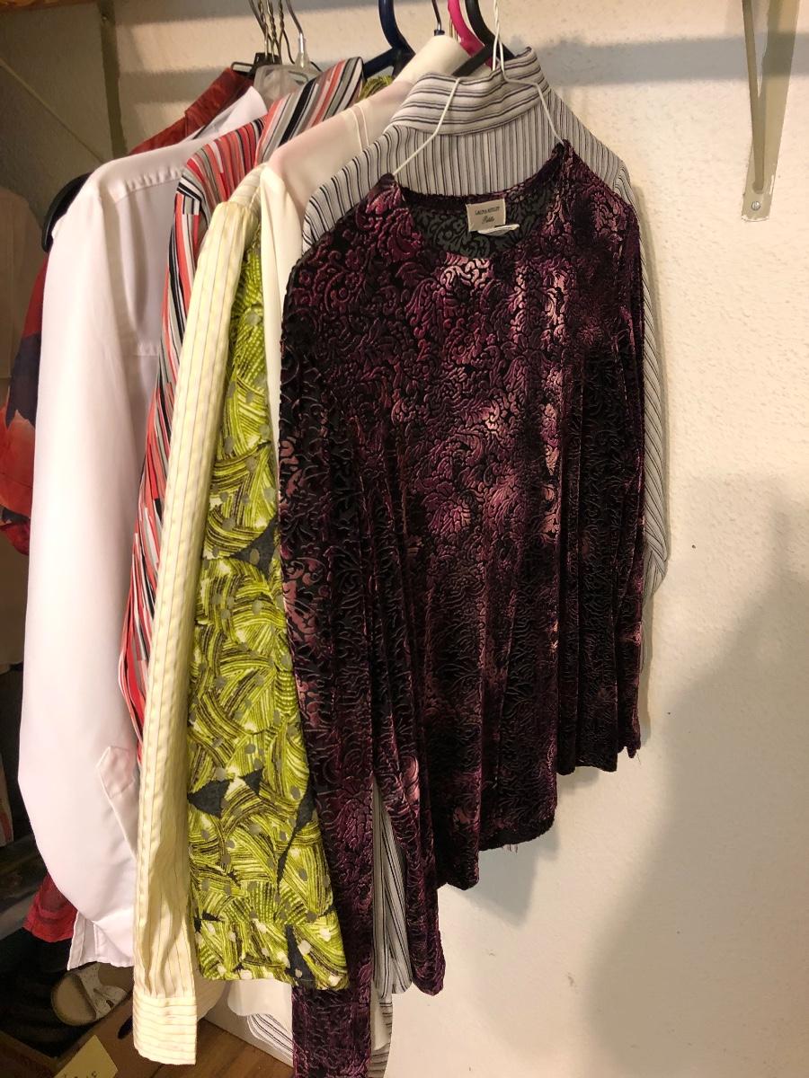 A large collection of ladies tops in size medium and some Medium Petites. Lot includes clothing by Laura Ashley, Fashion Bug, N Touch, Claudia D, Alfred Dunner, Ruby Rd, Casual Corner and many more.