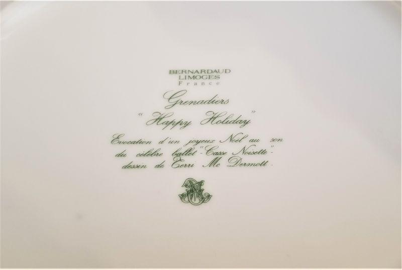 Pretty Christmas-themed serving platter, featuring Nutcracker-type figures. Signed "Bernardand Limoges" in the "Grenadiers" pattern. 12.5" x 11". Good condition.