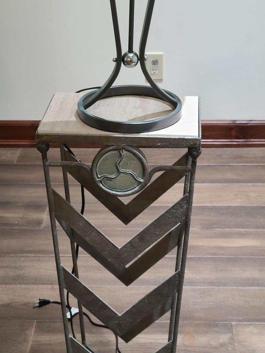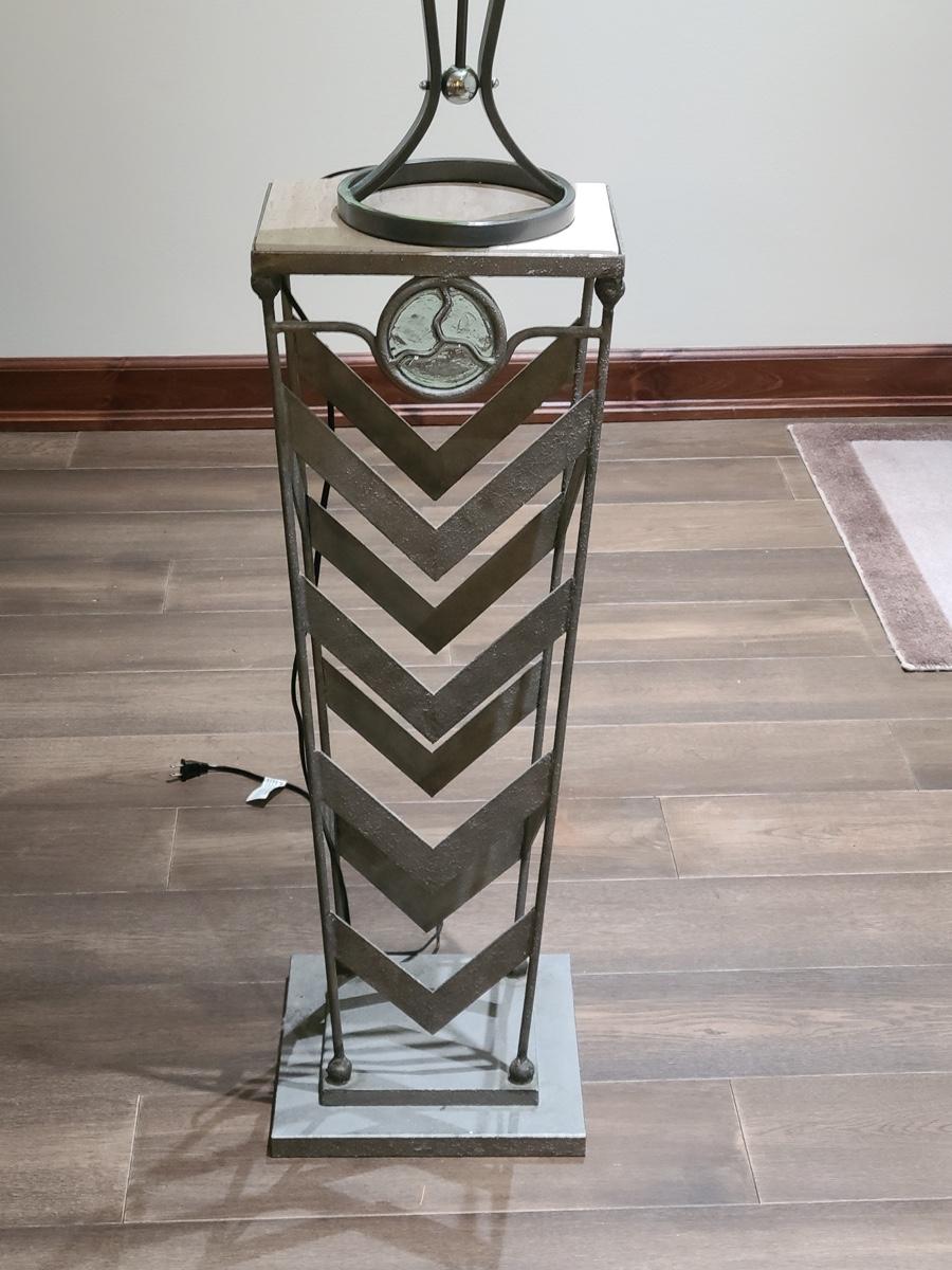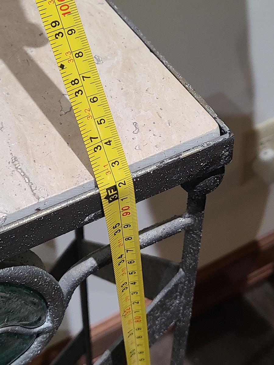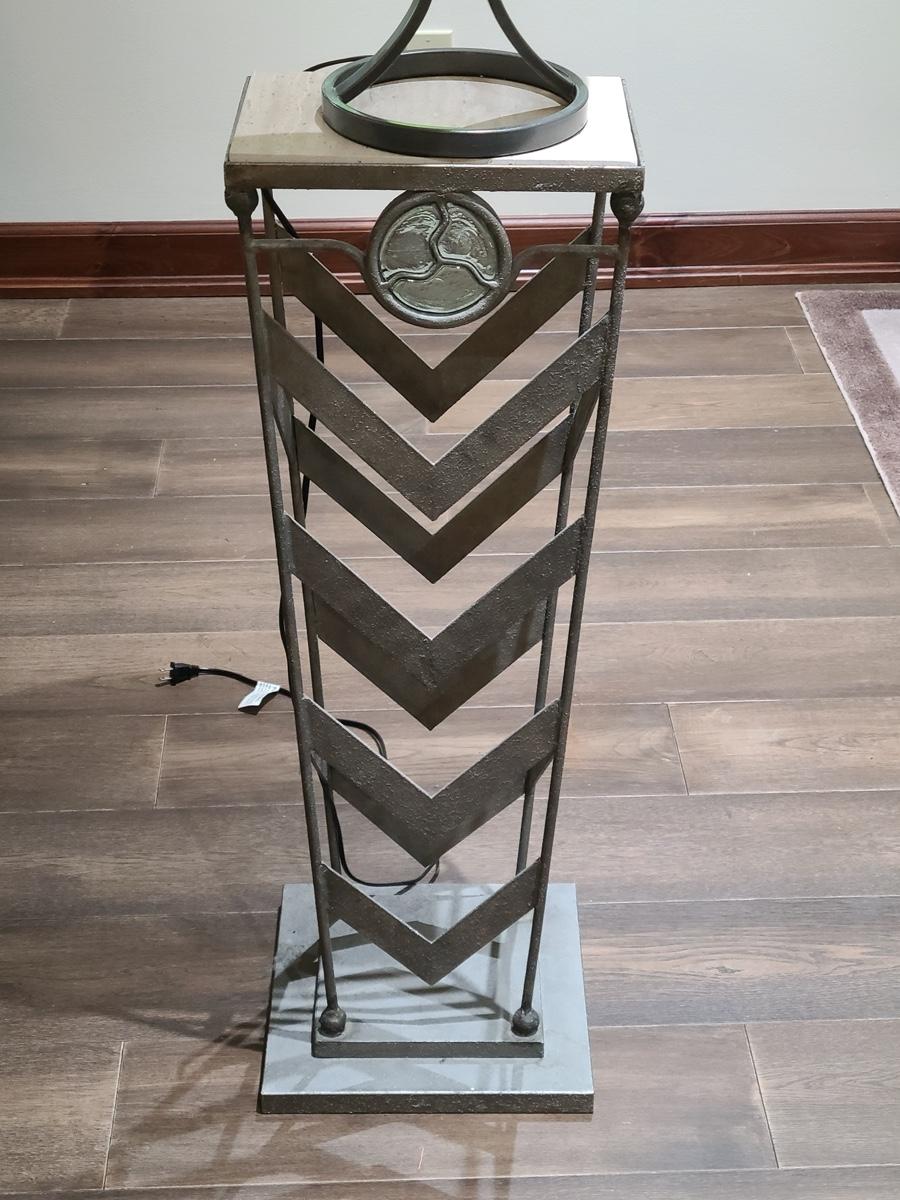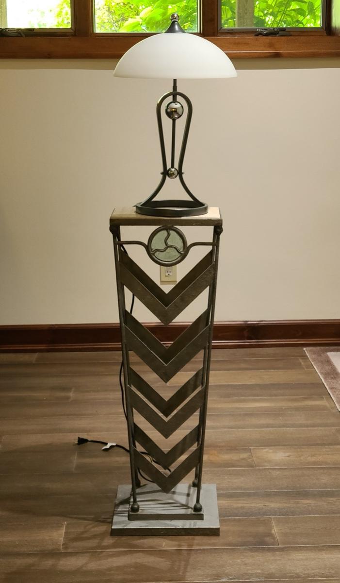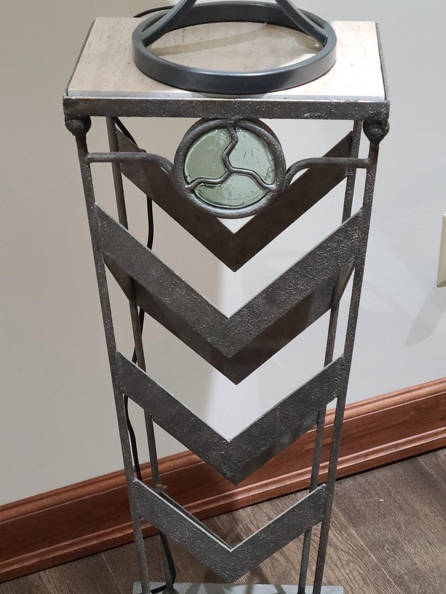 This table is made solid with heavy metal framework accented with glass embellishments on the front. Perfect for a plant stand or accent table. The top is marble and the lamp has silver accents such as chrome and brushed steel. It to is solid. These are on the lower level and will need to be brought upstairs to exit. Please see all pictures as they are the best representation of the items. The pictures show condition, measurements if taken, and what is included in the lot. Due to the large amount that we photograph and the time frame, we are not always able to take measurements. All items unless noted, are pre-owned and have been used. If you purchased furniture, you must bring help. We do not allow one person to carry large furniture out on their own. Bring help, tools and a truck for the safety of our clients homes, and your personal safety. Company policy. Thank you.